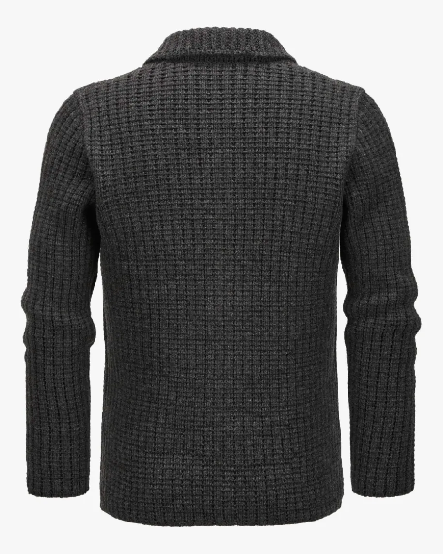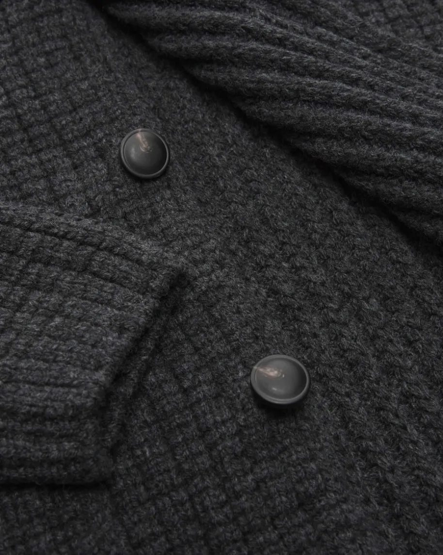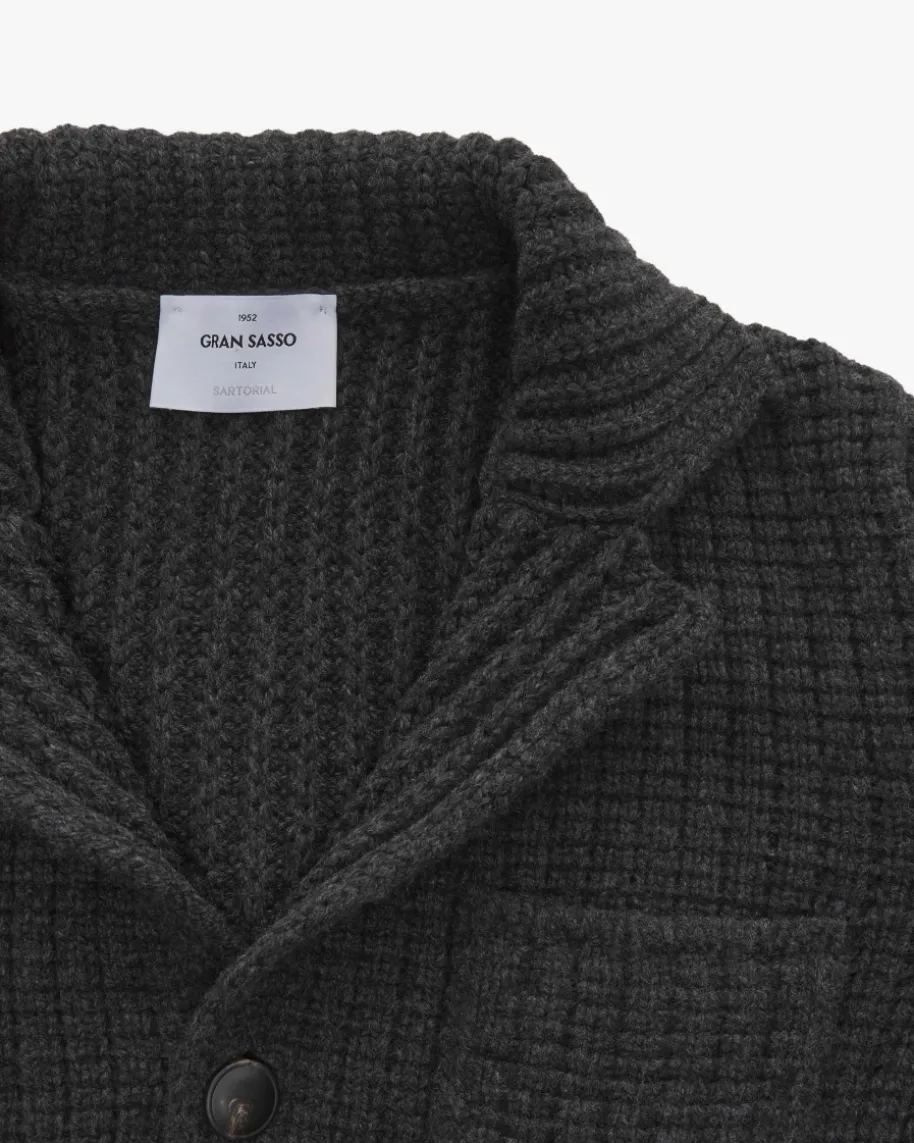 Cardigan für Herren von Gran Sasso in Anthrazit. Während die hochwertigeSchurwoll-Qualität in origineller Waffel-Struktur brilliert, schafft das sonstschlicht gehaltene Design einen Casual-Begleiter für moderne Outfits.