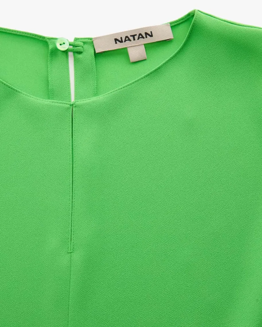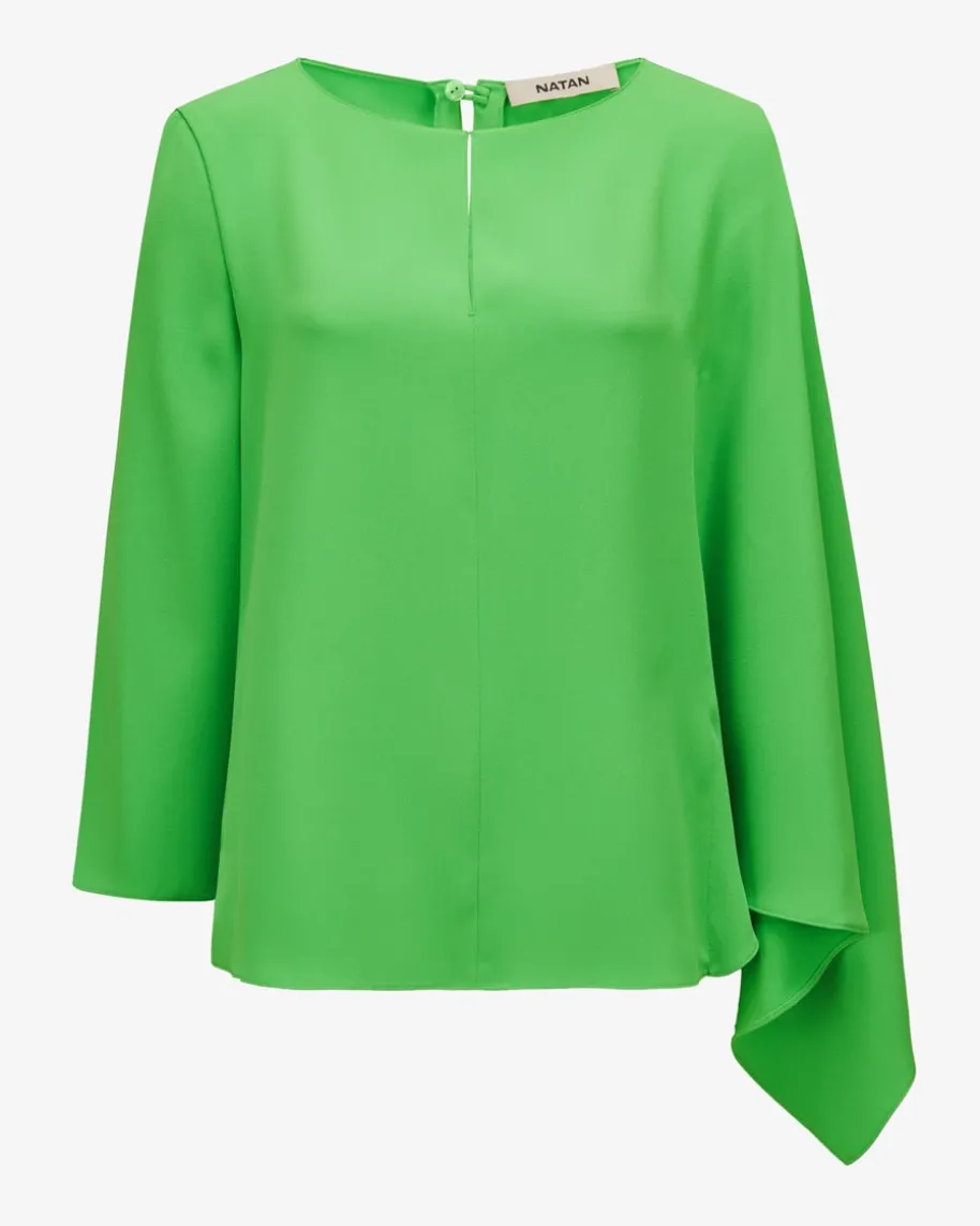 Carlos Bluse für Damen von Natan in Apfel. Mit diesem Modell hat das belgischeLabel ein modisches Piece aus fließender Crepe-Qualität geschaffen, das dank derraffinierten Silhouette im Cape-Stil mit asymmetrischen Ärmeln besondereHighlight-Looks garantiert.