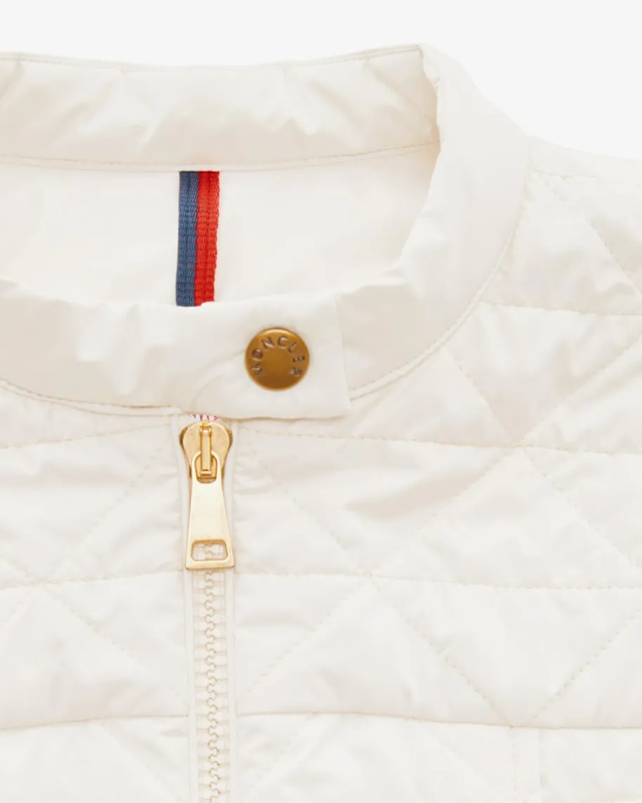 Caron Steppjacke für Damen von Marc Cain in Creme. Das Modell in geometrischemSteppmuster überzeugt mit besonderer femininer Schnittform, während klassischeDetails den Gesamtlook harmonisch abrunden.