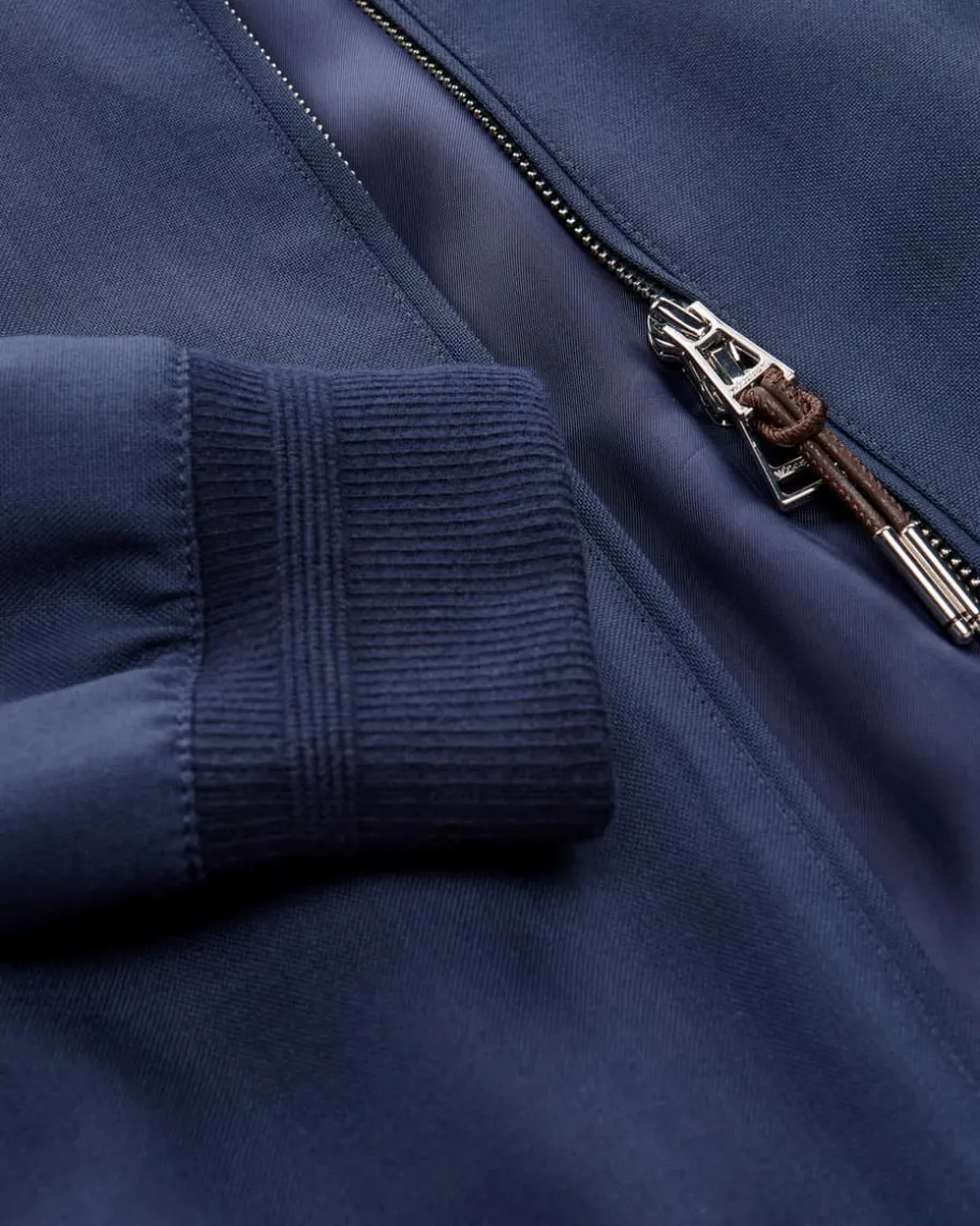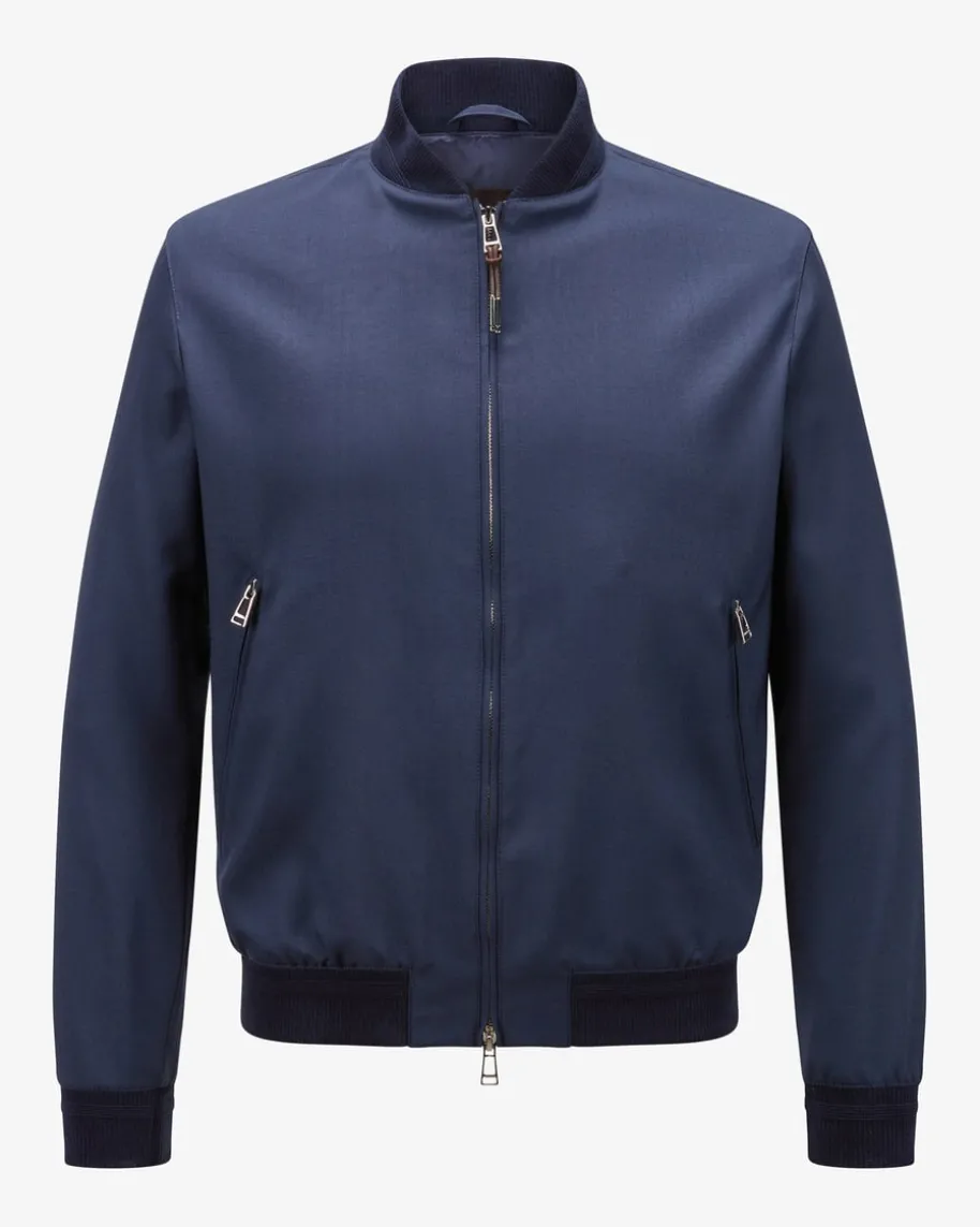 Carpino Blouson Regular Fit für Herren von Windsor in Navy. Das Modell zeichnetsich durch die leichte Schurwoll-Verarbeitung aus und sorgt für angenehmenTragekomfort. Die modische Passform mit College-Kragen und Rippstrick-Bündchenverleiht einen sportiven Touch und rundet den Style gekonnt ab.