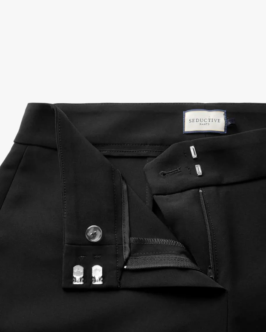 Carry Hose für Damen von Seductive in Schwarz. Hochwertige Materialien,perfekter Sitz und feminine Schnitte – hierfür steht das Label Seductive, dasausschließlich in den Top-Manufakturen Italiens produziert. Das Modell mitmodisch ausgestelltem Bein präsentiert sich in femininer Aufmachung, während dieelastische, fließende Qualität angenehme Tragemomente garantiert.