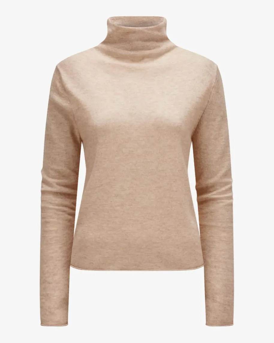 Cashmere-Pullover für Damen von Hemisphere in Beige. Das melierte Stehkragen-Modell präsentiert sich dank des leichten Feinstrick-Designs als optimalesLayering-Piece, während die Verwendung von reiner Cashmere-Wolle einen besondersweichen Griff verspricht.