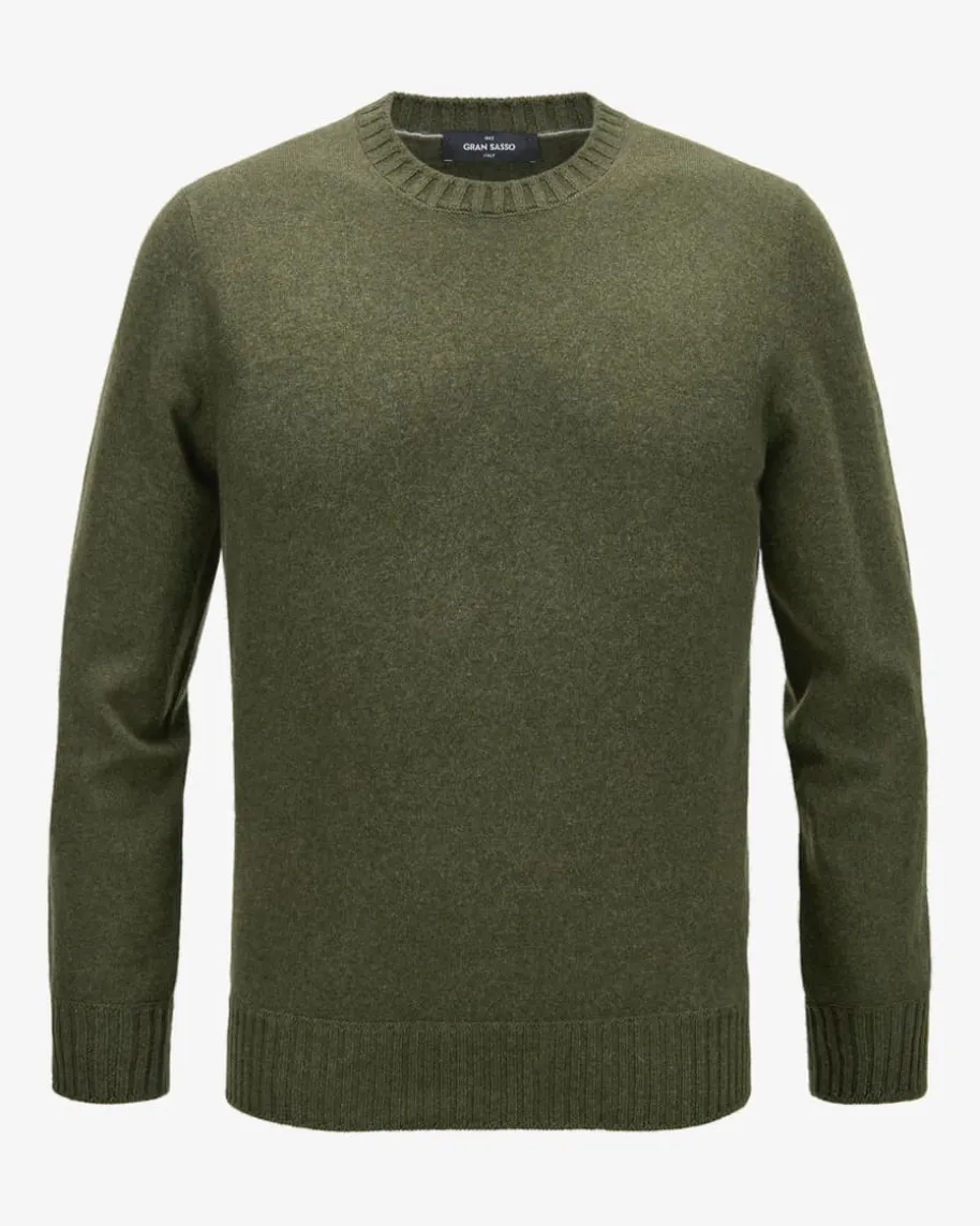 Cashmere-Pullover für Herren von Gran Sasso in Oliv. Das feine Strickmusterals auch klassische Rippstrick-Elemente machen das Modell zu einem zeitlosenPiece, während die Verwendung von hochwertiger Cashmere-Wolle einen besondersweichen Griff aufweist.