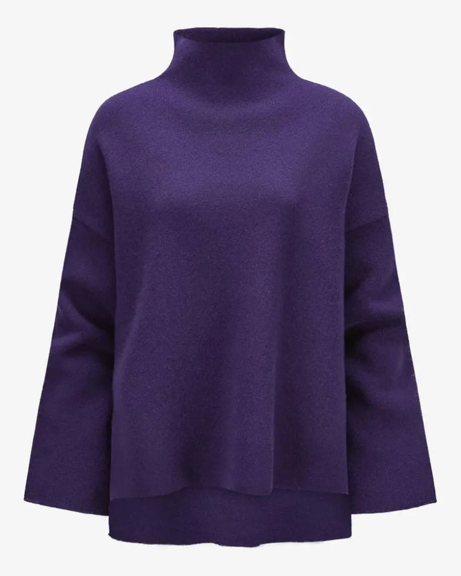 Cashmere-Pullover für Damen von LODENFREY in Pflaume. Das Oversize-Modell ausfeiner Cashmere-Qualität begeistert durch die weiche Haptik und die markantenSeitenschlitze, die den Pullover zu einem komfortablen sowie modischen Strick-Liebling machen.
