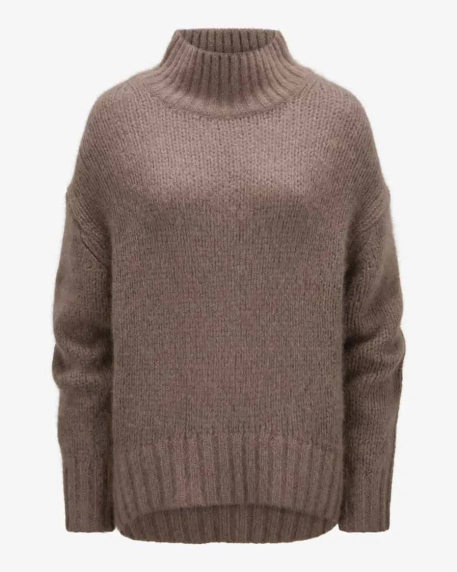 Cashmere-Pullover für Damen von Hemisphere in Braun. Das Stehkragen-Modellpräsentiertsich dank der Oversize-Schnittführung sowie dem groben Strickmuster als legererHerbst-Winter-Liebling mit Country-Charakter, welcher durch den hochwertigenCashmere-Mix einen weichen Griff erhält.