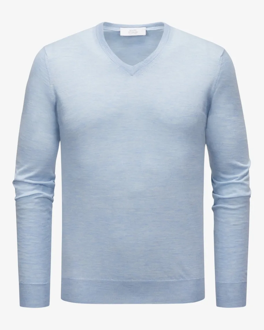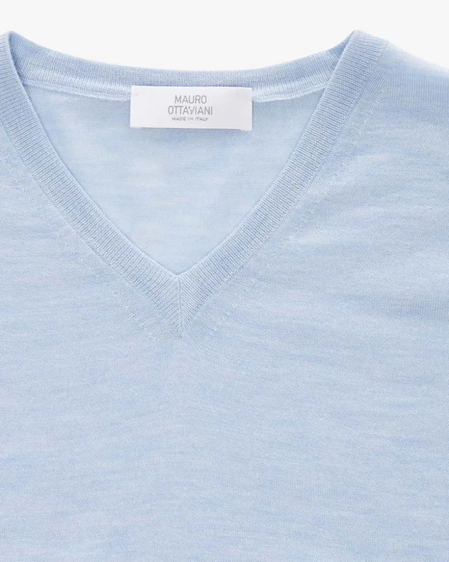 Cashmere-Seiden-Pullover für Herren von Mauro Ottaviani in Hellblau.Leidenschaft und erstklassige Handwerkskunst, welche perfekt auf die Bedürfnissemoderner Männer angepasst ist, zeichnet das Label Ottaviani aus. Dank derVerwendung von hochwertigem Cashmere-Seiden-Mix punktet das Modell mit feiner,weicher Strick-Qualität, während das klassische Design einen zeitlosen Favoritenfür Ihre Casual-Garderobe schafft.