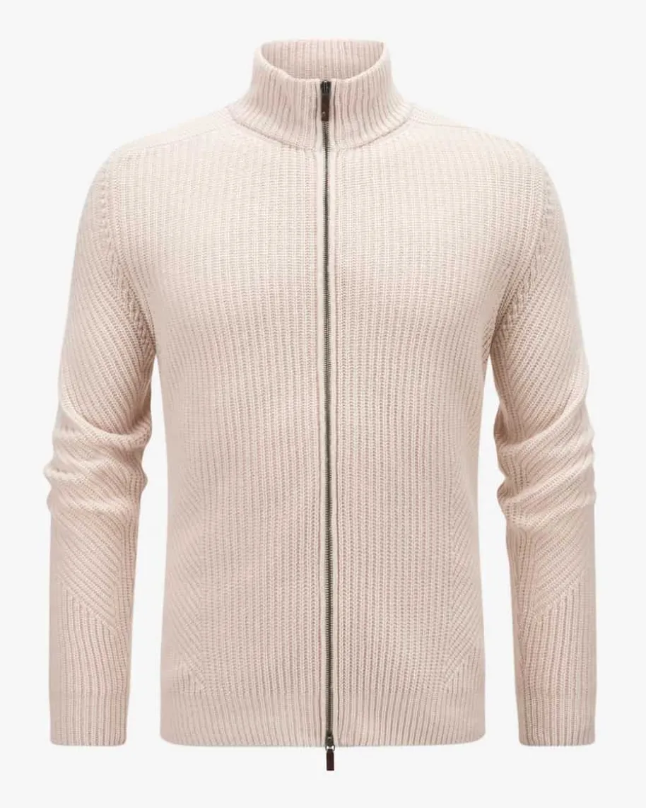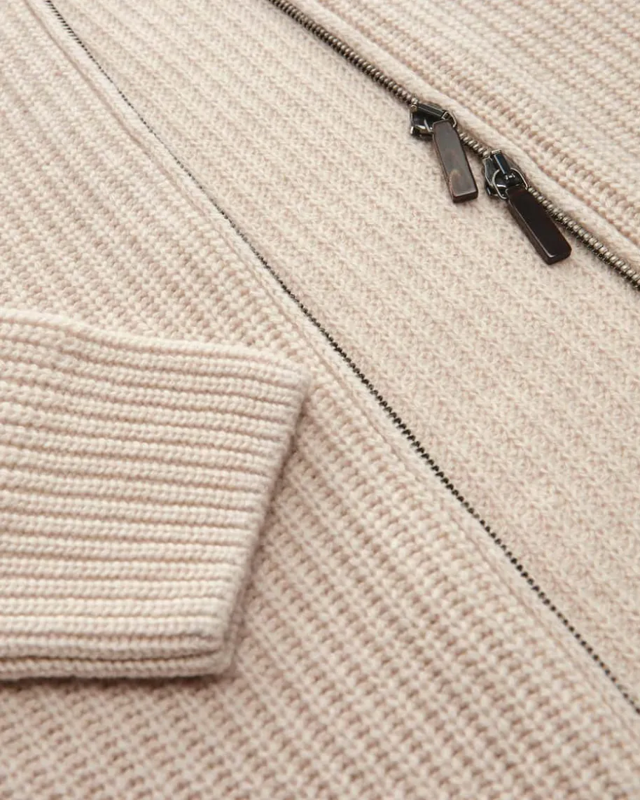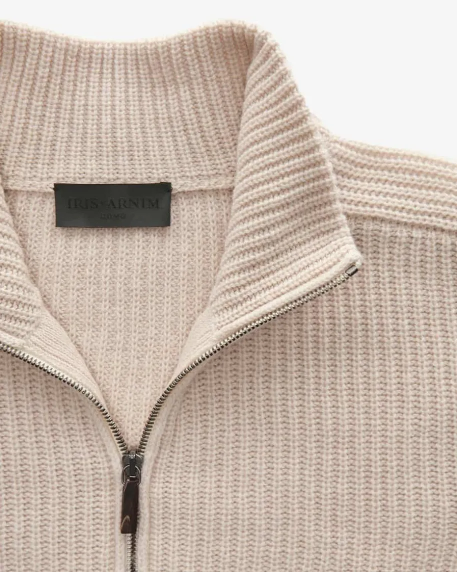 Cashmere-Strickjacke für Herren von Iris von Arnim in Creme. Die weicheCashmere-Verarbeitung verleiht dem Modell eine besonders hochwertige Haptik,während der Zweiwege-Reißverschluss und die sportiven Ripp-Streifen für einenmodernen Twist sorgen.