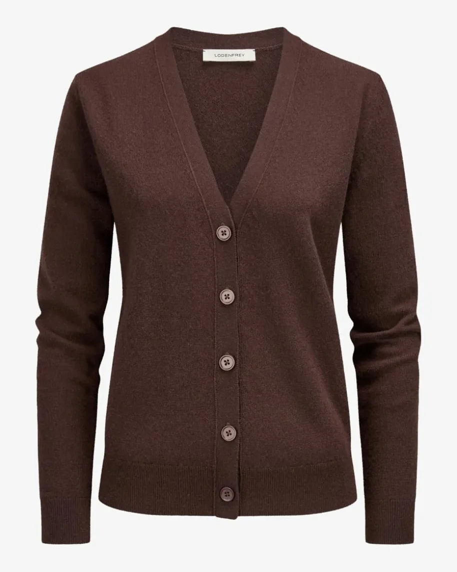 Cashmere-Strickjacke für Damen von LODENFREY in Schoko. Dank hochwertigerCashmere-Qualität überzeugt das Modell mit leichten Tragemomenten und einerweichen Haptik, während das minimalistische Design mit tonalen Knöpfen einzeitloses Strick-Essential schafft.