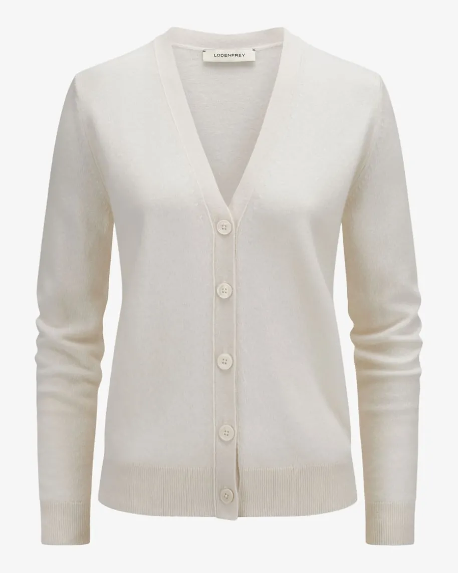 Cashmere-Strickjacke für Damen von LODENFREY in Creme. Dank hochwertigerCashmere-Qualität überzeugt das Modell mit leichten Tragemomenten und einerweichen Haptik, während das minimalistische Design mit tonalen Knöpfen einzeitloses Strick-Essential schafft.