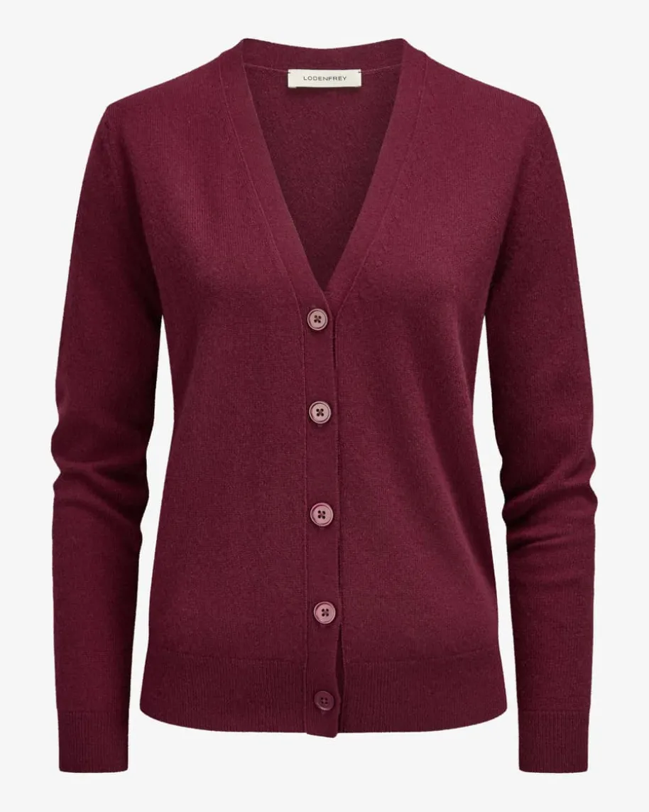 Cashmere-Strickjacke für Damen von LODENFREY in Bordeaux. Dank hochwertigerCashmere-Qualität überzeugt das Modell mit leichten Tragemomenten und einerweichen Haptik, während das minimalistische Design mit tonalen Knöpfen einzeitloses Strick-Essential schafft.