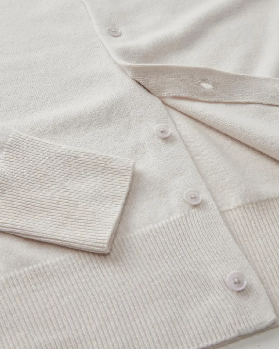 Cashmere-Strickjacke für Damen von Extreme Cashmere in Creme. Das Modell aushochwertiger Cashmere-Qualität punktet mit einer angenehm weichen Haptik,während das schlichte Design einen vielseitigen Alltagsbegleiter schafft.