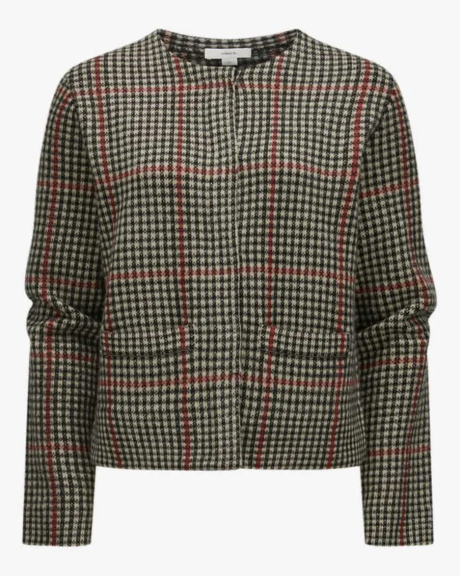 Cashmere-Strickjacke für Damen von Vince in Schwarz, Beige und Rot. Daskalifornische Label steht für relaxed Luxury – edle Basics, weiche Stoffe undklare Schnitte. Auch dieses Modell begeistert dank der hochwertigen Cashmere-Qualität mit besonders weichem Griff, während das klassische Karo-Strickmusterden femininen Style gekonnt abrundet.