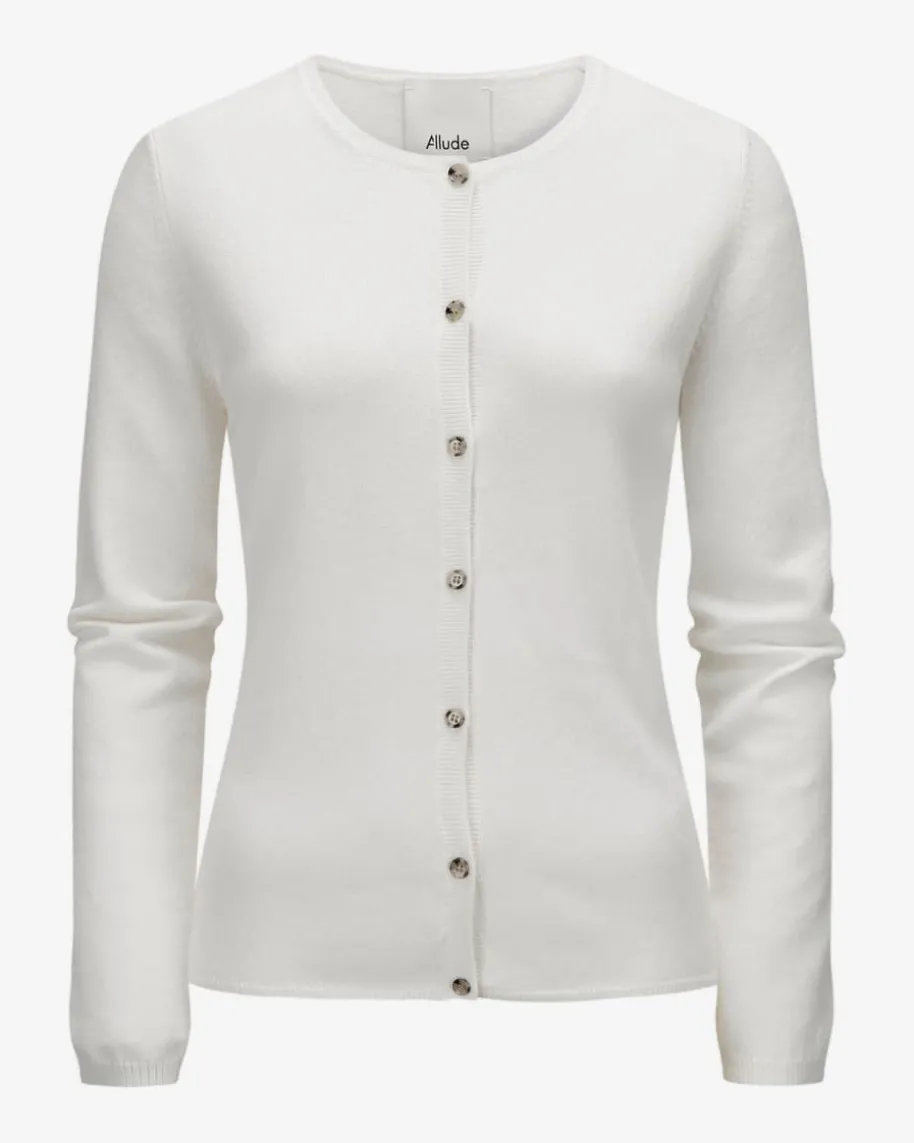 Cashmere-Strickjacke für Damen von Allude in Off-White. Das Münchner UnternehmenAllude steht für Mode, die Selbstbewusstsein und zeitlose Individualitätausstrahlt. Gefertigt aus hochwertiger Cashmere-Wolle, besticht das schlichteModell mit besonders weichem Griff und leichter Strick-Haptik, wodurch einzeitloses Essential entsteht.