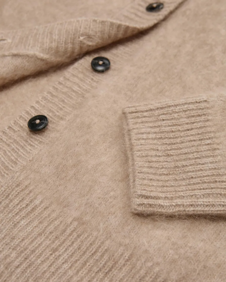 Cashmere-Strickjacke für Damen von LODENFREY in Beige. Dieses Modell begeistertdank der hochwertigen brushed Cashmere-Qualität mit weichem Griff, währendRippstrick-Details und kontrastfarbige Knöpfe eine sportive Note verleihen.