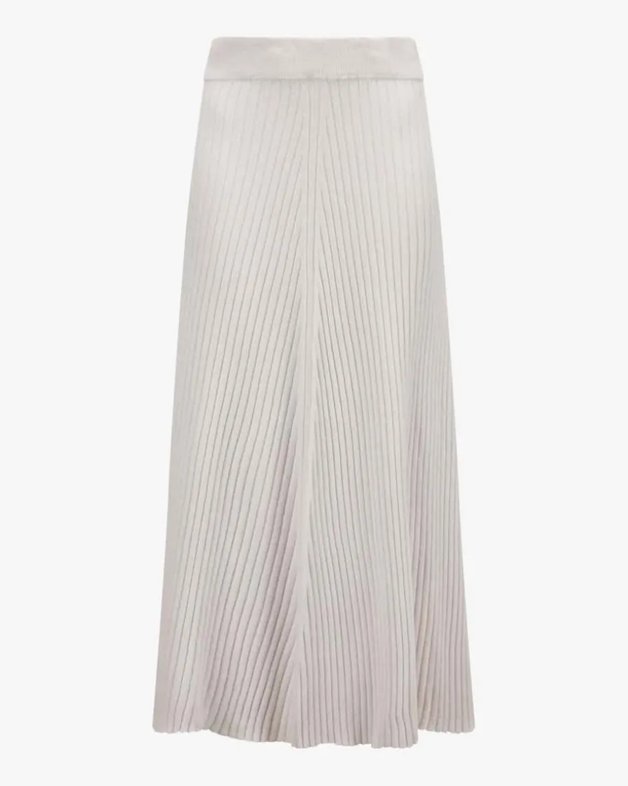 Cashmere-Strickrock für Damen von Allude in Hellgrau. Das Modell begeistert mitcleanemDesign und feiner Cashmere-Qualität, die für angenehme Tragemomente sorgt,während das Design mit Rippstrick-Streifen und ausgestellter Passform in Maxi-Länge eine feminine Silhouette zaubert.