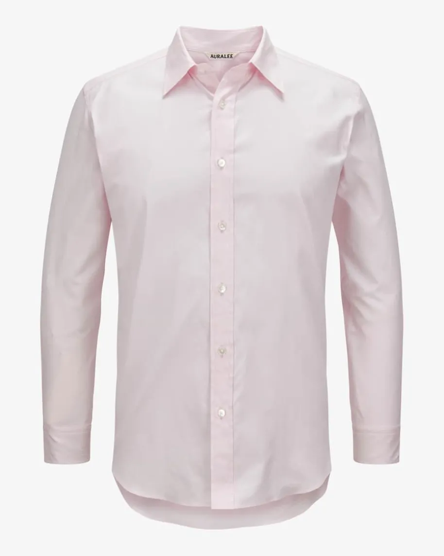 Casualhemd für Herren von Auralee in Hellrosa. Das hochwertige Modell ausweicher Baumwolle besticht mit einer angenehmen Haptik, während die schlichteSchnittführung einen vielseitigen Begleiter für modische Looks kreiert.