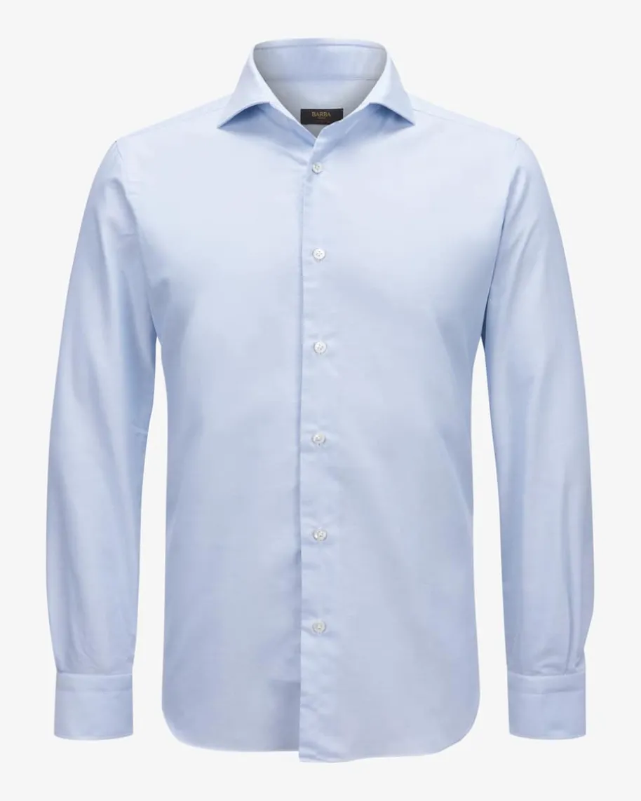 Casualhemd für Herren von Barba in Hellblau. Das Modell aus der Culto-Linieüberzeugt dank der feinen Pinpoint-Qualität sowohl als eleganter Alltags-Favoritals auch als stilvoller Business-Begleiter, während klassische Details dasGesamtbild mit maskulinem Charme abrunden.