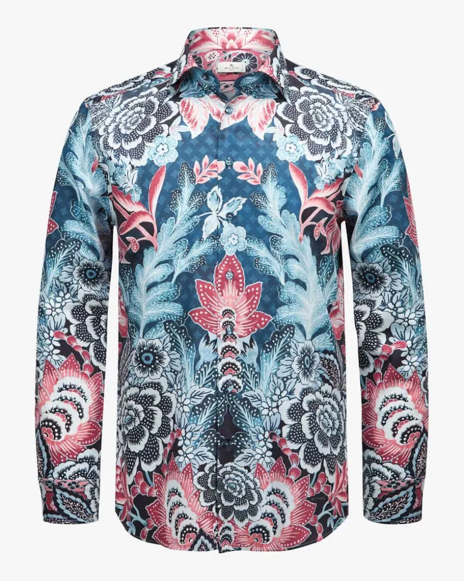 Casualhemd für Herren von Etro in Navy, Weiß und Rot. Das Label, 1968 in Mailandgegründet, steht für luxuriösen Lifestyle und vereint Exzellenz und Qualität inMode, Accessoires, Wohnkultur und Düften. Auch dieses Modell präsentiert sichdank der leichten Baumwoll-Qualität als angenehmer Begleiter für stilvolleLooks, während das florale Allover-Dessin im japanischen Stil eineneinzigartigen Look kreiert.
