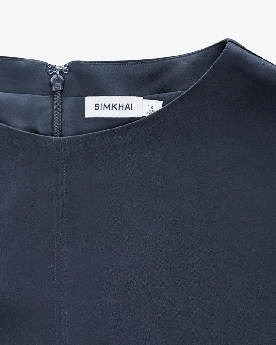 Catriona Dolman Kleid für Damen von Simkhai in Navy. Der aus New York stammendeDesigner Jonathan Simkhai interpretierte für seine Entwürfe die Vorstellung vonfemininer Mode neu und verlieh seinen Designs eine sinnliche und kraftvolleAusstrahlung. Dieses Modell präsentiert sich mit changierender Material-Qualitätund ausgestelltem Rock und schafft so einen zeitlos-eleganten Look.