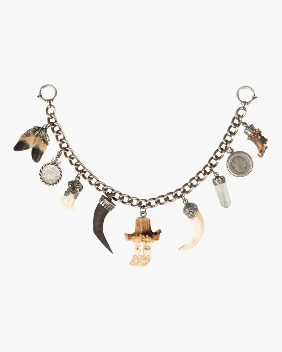Charivari für Herren von Bayern Specials. Das exklusiv für LODENFREY entworfeneCharivari ist aus massiven Echtsilber Ketten-Gliedern gefertigt. Die in Silbergefassten Anhänger sind variabel platzierbar und runden durch den traditionell-rustikalen Stil das Gesamtbild gekonnt ab.