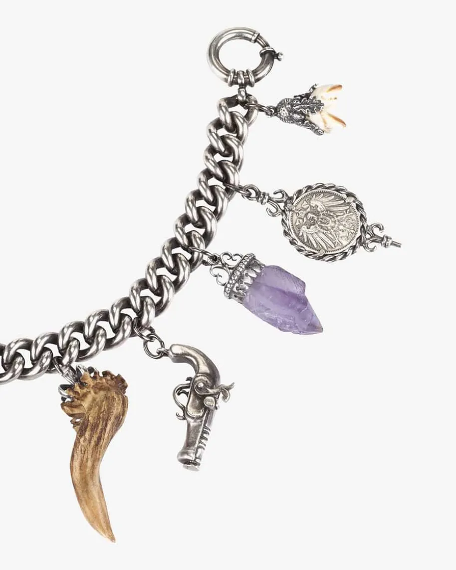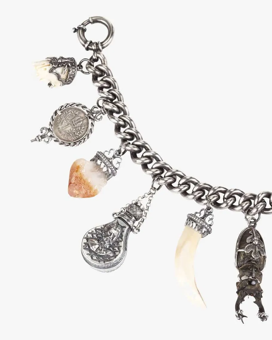 Charivari für Herren von Bayern Specials. Das exklusiv für LODENFREY entworfeneCharivari ist aus massiven Echtsilber Ketten-Gliedern gefertigt und verleihtIhrem Trachten-Look eine einzigartige, edle Note. Die in Silber gefasstenAnhänger sind variabel platzierbar und runden durch den traditionell-rustikalenStil das Gesamtbild gekonnt ab.