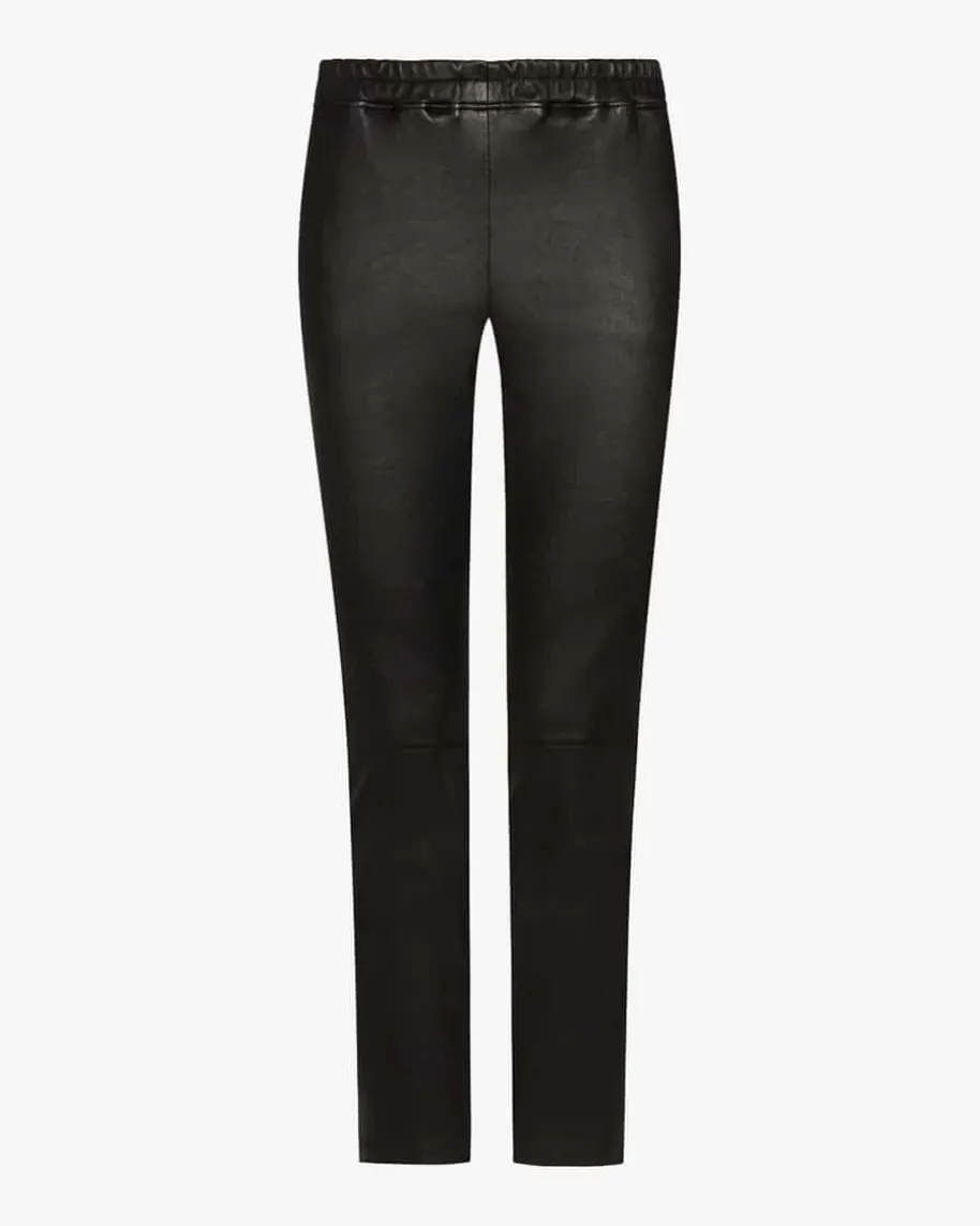 Chatou Lederhose für Damen von Arma in Schwarz. Das gerade geschnittene Modellaus elastischem Lammleder besticht durch den elastischen Bund sowie modischenAbnähern. Die hochwertige Lederhose lässt sich ideal zu vielen unterschiedlichenOutfits kombinieren.