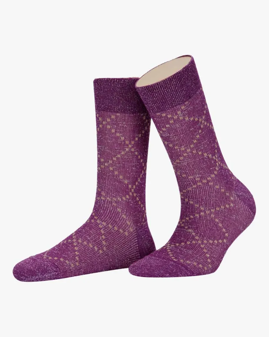 Check Strümpfe für Damen von Alto in Violett. Das Modell begeistert dankstilvollem Allover-Dessin in modischer Aufmachung, während die Glitzerfasern fürden letzten Schliff sorgen.