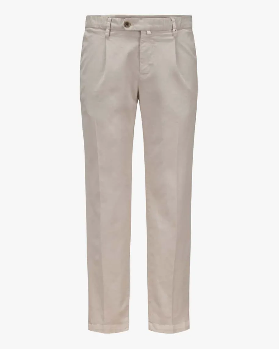 Chino für Herren von Myths in Beige. Ein Klassiker mit Stil – Das Modell inweicher Gabardine-Qualität punktet mit zeitlosem Design und hohem Tragekomfort,während die Bundfalten das Gesamtbild stilvoll unterstreichen.