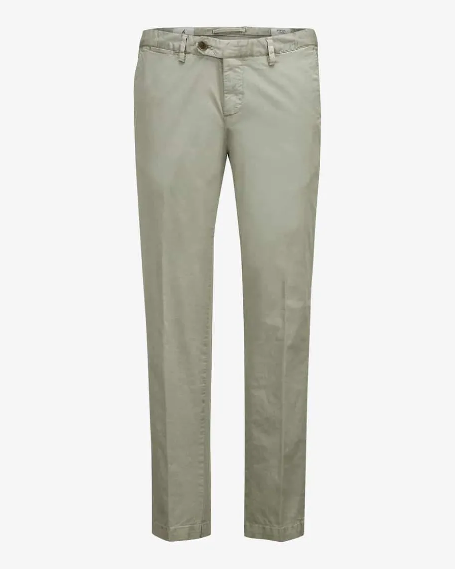 Chino für Herren von Myths in Salbei. Das Modell aus weicher Pima Baumwollepunktet mit zeitlosem Design, während die verkürzte Passform modische Akzentesetzt. Die elastische Material-Qualität garantiert zudem angenehme Tragemomente.