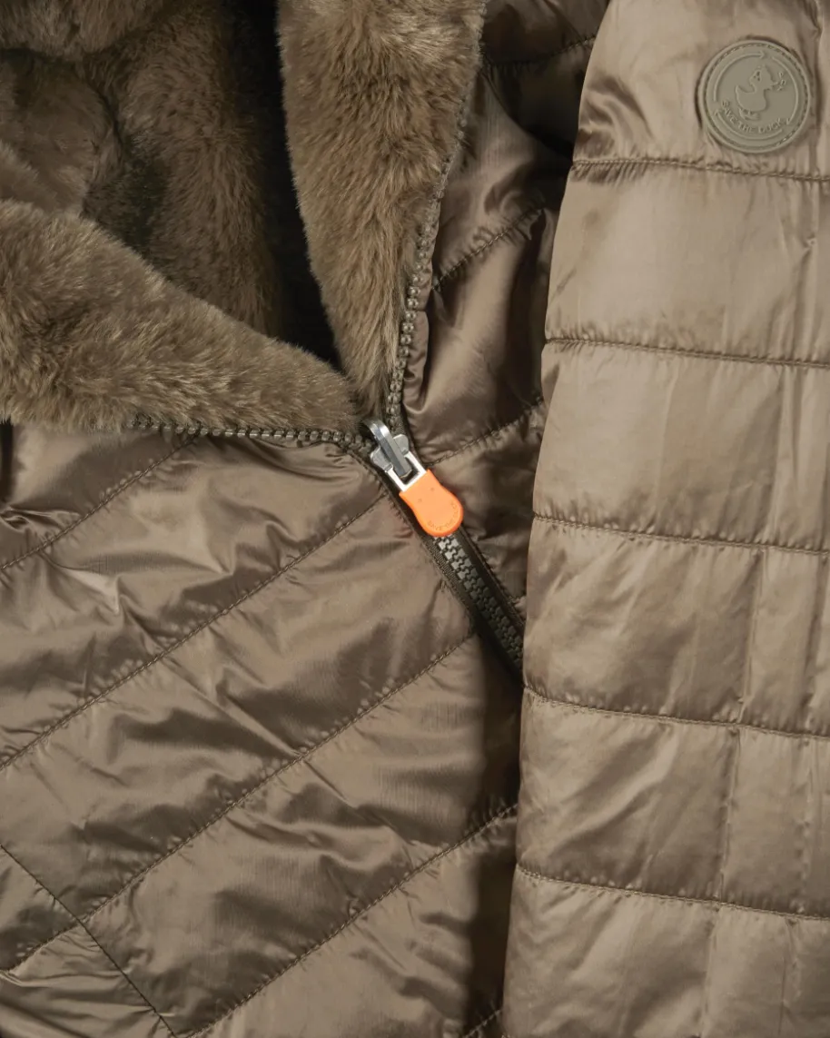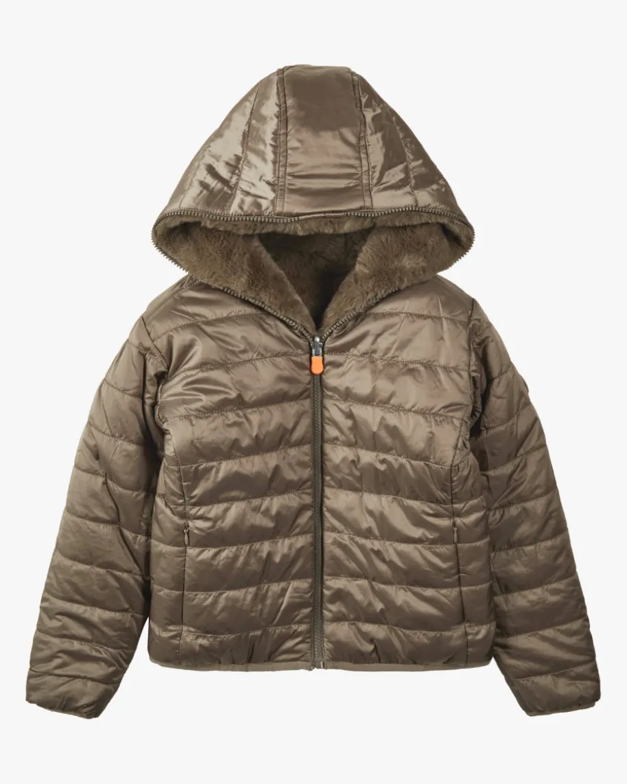 Chloe Wendejacke für Mädchen von Save the Duck in Oliv. Das nachhaltig designteModell begeistert dank praktischer Wende-Funktion sowie der leichten Füllung alsideales Piece für Freizeit-und Alltags-Looks, während die modische Steppungsowie die Fell-Optik einen angesagten Begleiter für Ihre Kleinen schaffen.