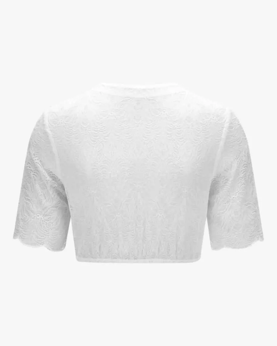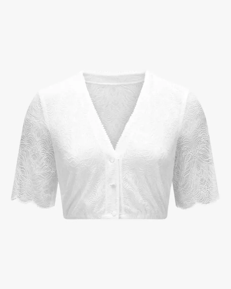 Clara Dirndlbluse für Damen von LODENFREY in Weiß. Das Modell zeichnet sichdurch die semi-transparente Spitzen-Qualität aus elastischem Material aus,welche dank feinem floralem Muster stilvoll ergänzt wird – Ein romantischerBegleiter für Ihren Trachten-Look.