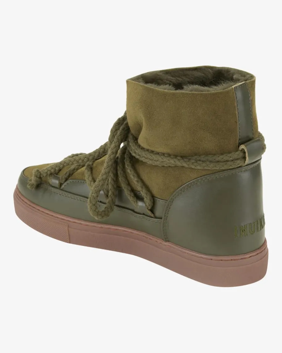 Classic Boots für Damen von Inuikii in Khaki. Zeitloses Design in Verbindung mitfunktionalem Komfort zeichnen dieses Modell aus. Während die wasserabweisendesowie schneedichte Eigenschaft einen praktischen Begleiter kreiert, hält Siedie Lammfell-Innenseite auch an kalten Tagen warm. Zugleich präsentiert sich dasModell durch die edle Veloursleder-Verarbeitung sowie die raffinierte Schnürungin modischer Aufmachung.