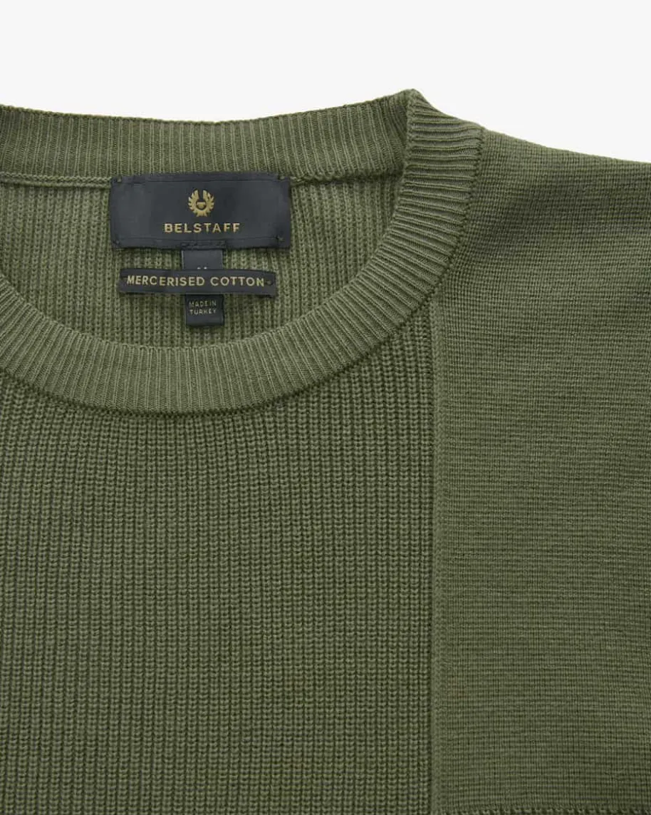 Commander Pullover für Herren von Belstaff in Oliv. Das Modell ausmerzerisierter Baumwolle besticht neben der angenehmen Rippstrick-Haptik auchdank dem legeren Design mit zulaufenden Bündchen als modisch-maskuliner Favoritmit labeltypischem Ärmel-Patch.