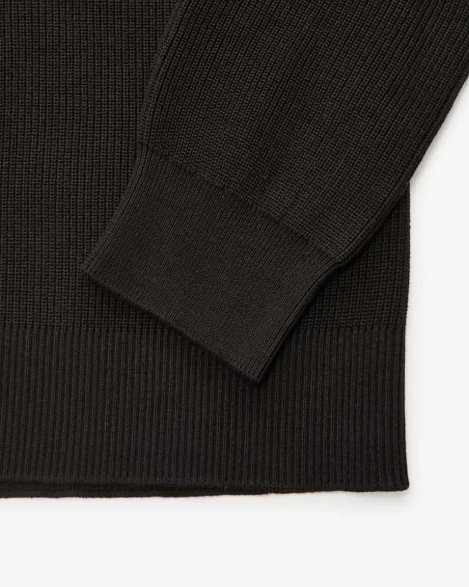 Commander Troyer für Herren von Belstaff in Schwarz. Das Modell ausmerzerisierter Baumwolle besticht neben der angenehmen Rippstrick-Haptik auchdank dem Half-Zip-Design als modisch-maskuliner Favorit mit labeltypischemÄrmel-Patch.