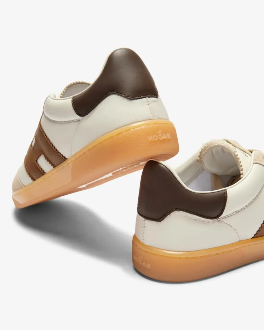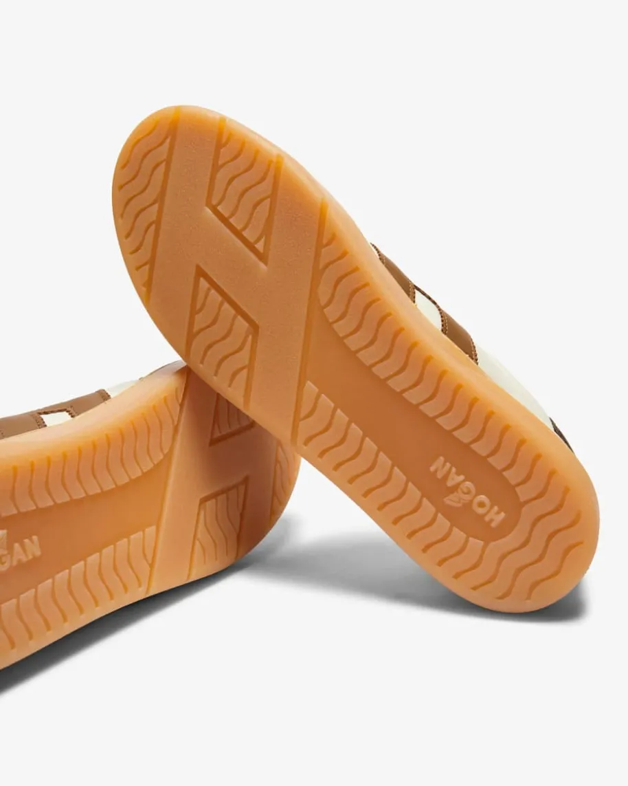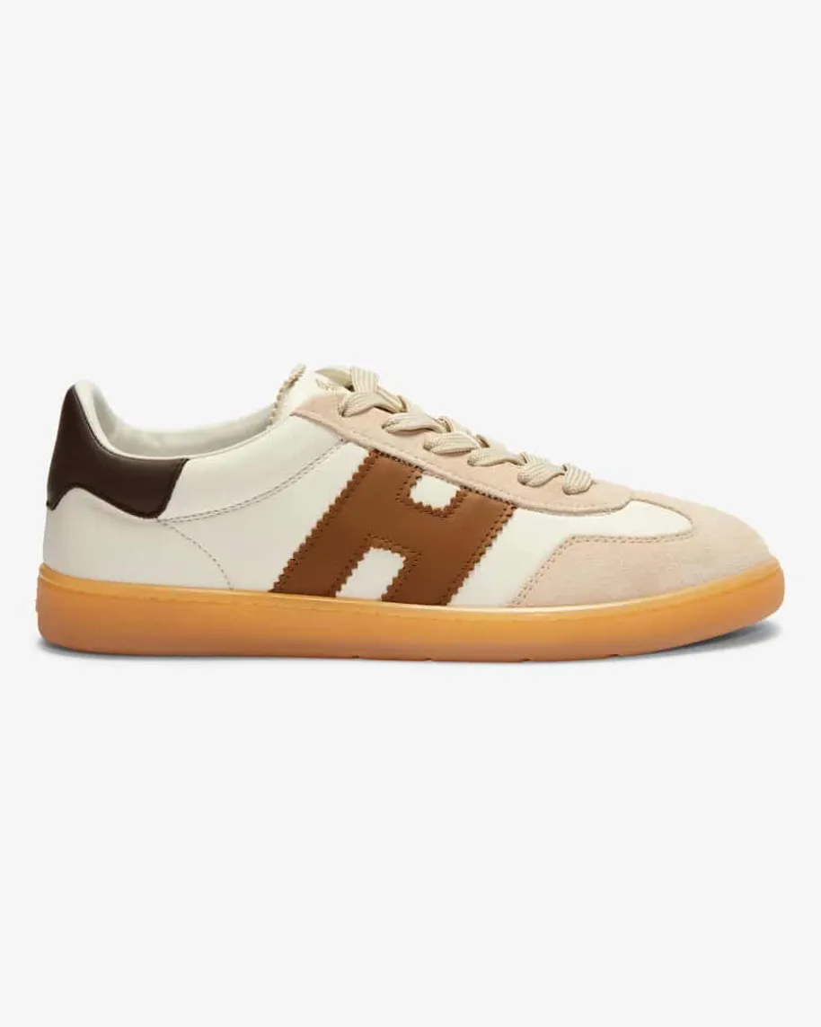 Cool Sneaker für Damen von Hogan in Creme und Cognac. Das Modell zeichnet sichdurch die harmonische Mischung aus Retro-Elementen und modernen Linien aus,welche dank dem farblich abgesetzten Leder-Mix gekonnt unterstrichen wird.Zugleich sorgt die weich gepolsterte Memory Foam-Innensohle für besonders hohenTragekomfort.