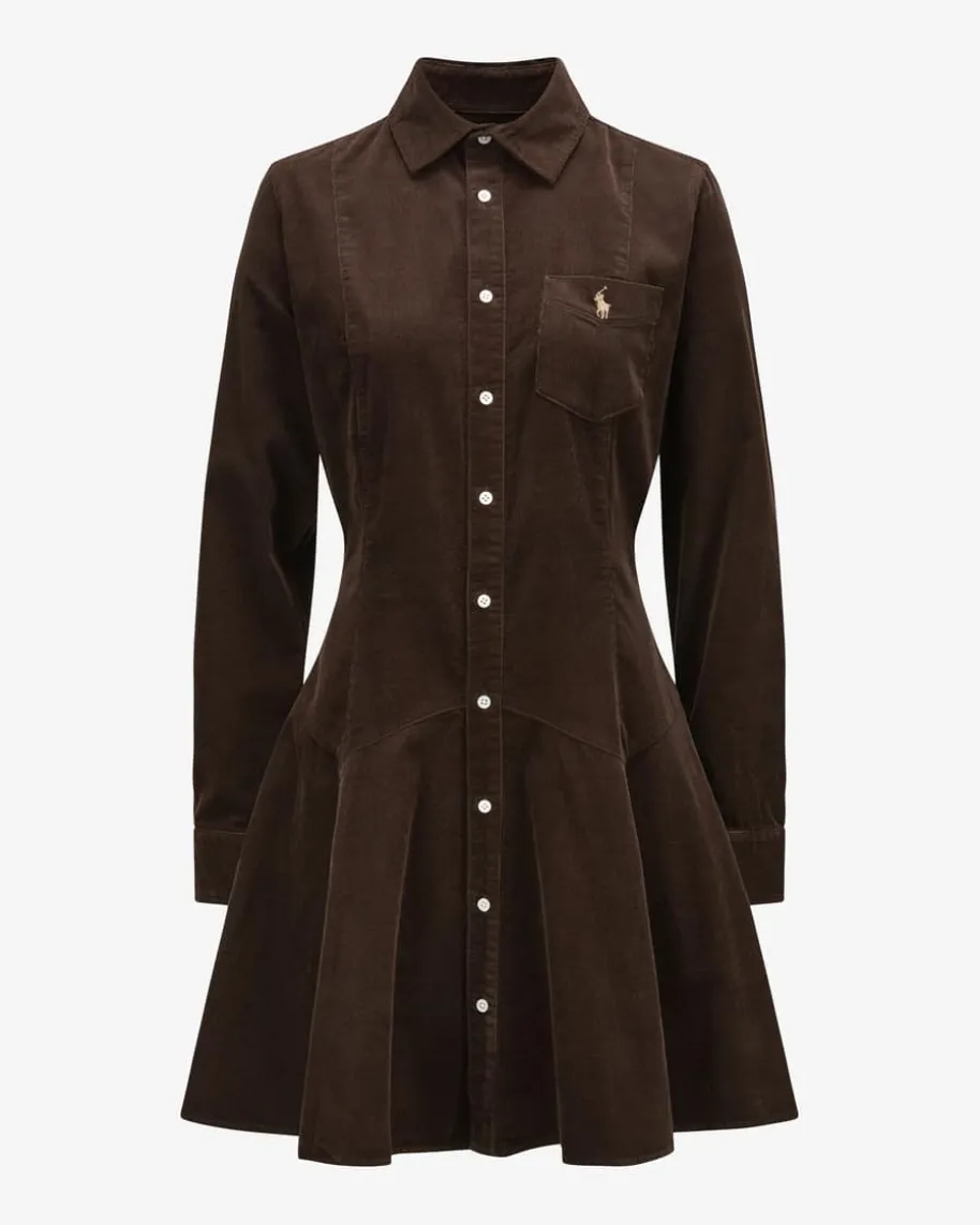 Cordkleid für Damen von Polo Ralph Lauren in Braun. Dank feiner Cord-Qualitätüberzeugt das Modell sowohl haptisch als auch optisch, während der angesetzteVolant für einen femininen Schwung sorgt und einen spannenden Kontrast zu dersonst legeren Hemdblusen-Silhouette kreiert.