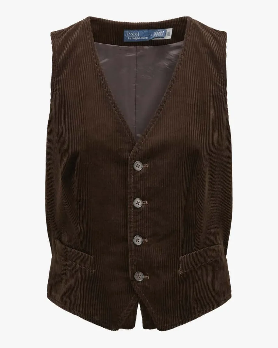 Cordweste für Damen von Polo Ralph Lauren in Dunkelbraun. Eine Ikone desamerikanischen Lifestyles – sportlich, preppy, klassisch. Auch dieses Modellüberzeugt mit taillierter Silhouette und weicher Cord-Qualität, die angenehmeTragemomente garantiert. Klassische Details und der verstellbare Rückenriegelrunden den stilvollen Look mit Equestrian Vibes ab.