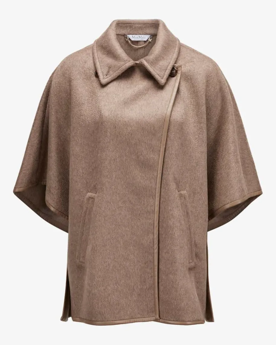 Corsaro Cashmere-Cape für Damen von Max Mara in Haselnuss. Das Modell aushochwertigem Cashmere überzeugt mit besonders weichem Griff, während die weiteSilhouette mit geknöpften Seiten einen stilvollen Begleiter für modernesLayering kreieren. Die tonigen Lederpaspelierungen runden den zeitlos-elegantenStyle mit Country-Vibes harmonisch ab.