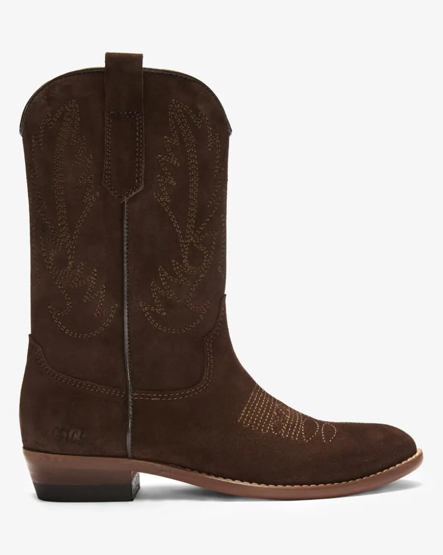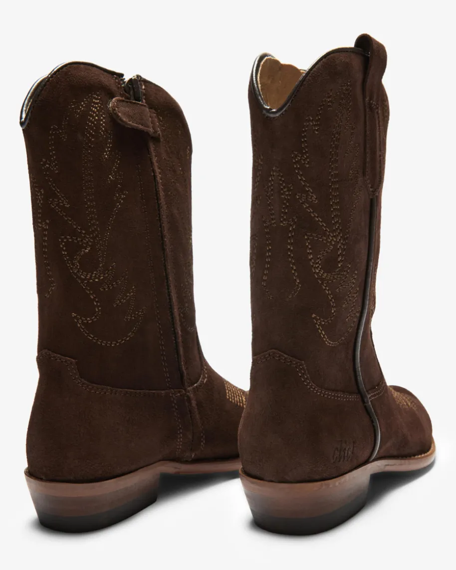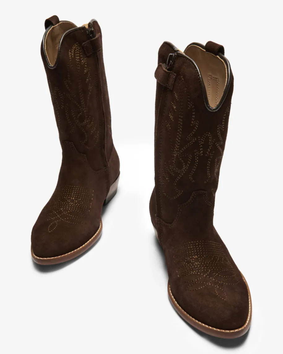 Cowboy-Stiefel für Mädchen von Clic in Braun. Während die edle Veloursleder-Qualität sowohl haptisch als auch optisch überzeugt, präsentiert sich diesesModell mit klassischer Aufmachung im Western-Look. Der Reißverschlusserleichtert zudem das An- und Ausziehen.