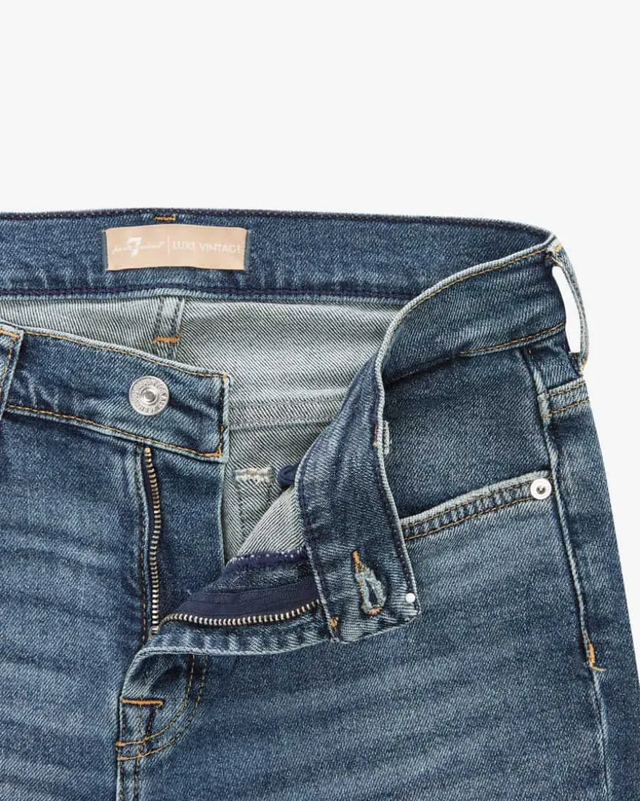 Daisy 7/8-Jeans Ankle Boot für Damen von 7 For All Mankind in Blau. Das Modellzeichnet sich durch das ausgestellte Bein aus und begeistert mit dem elastischenBaumwoll-Mix – Ein modischer Begleiter für vielfältige Outfits.
