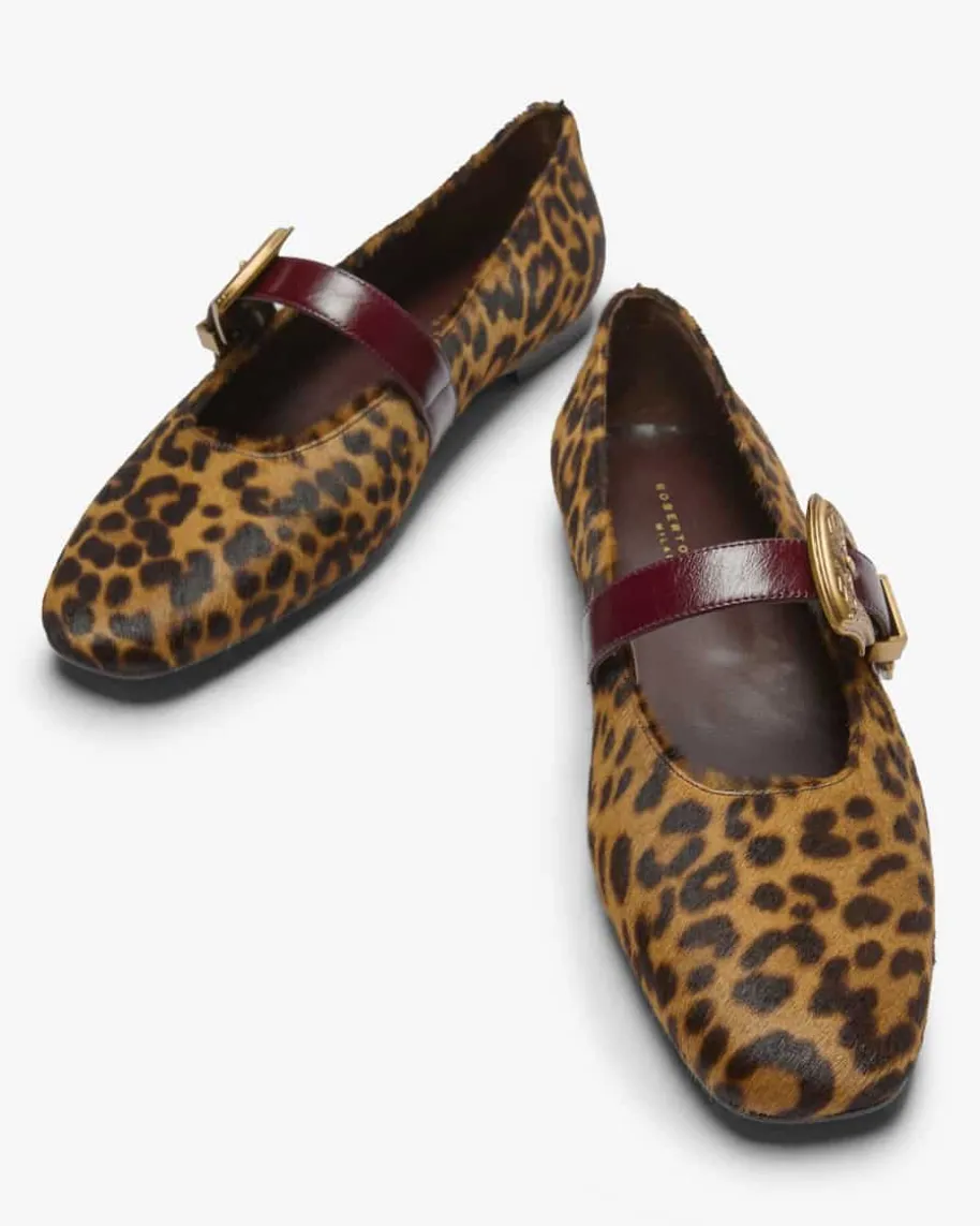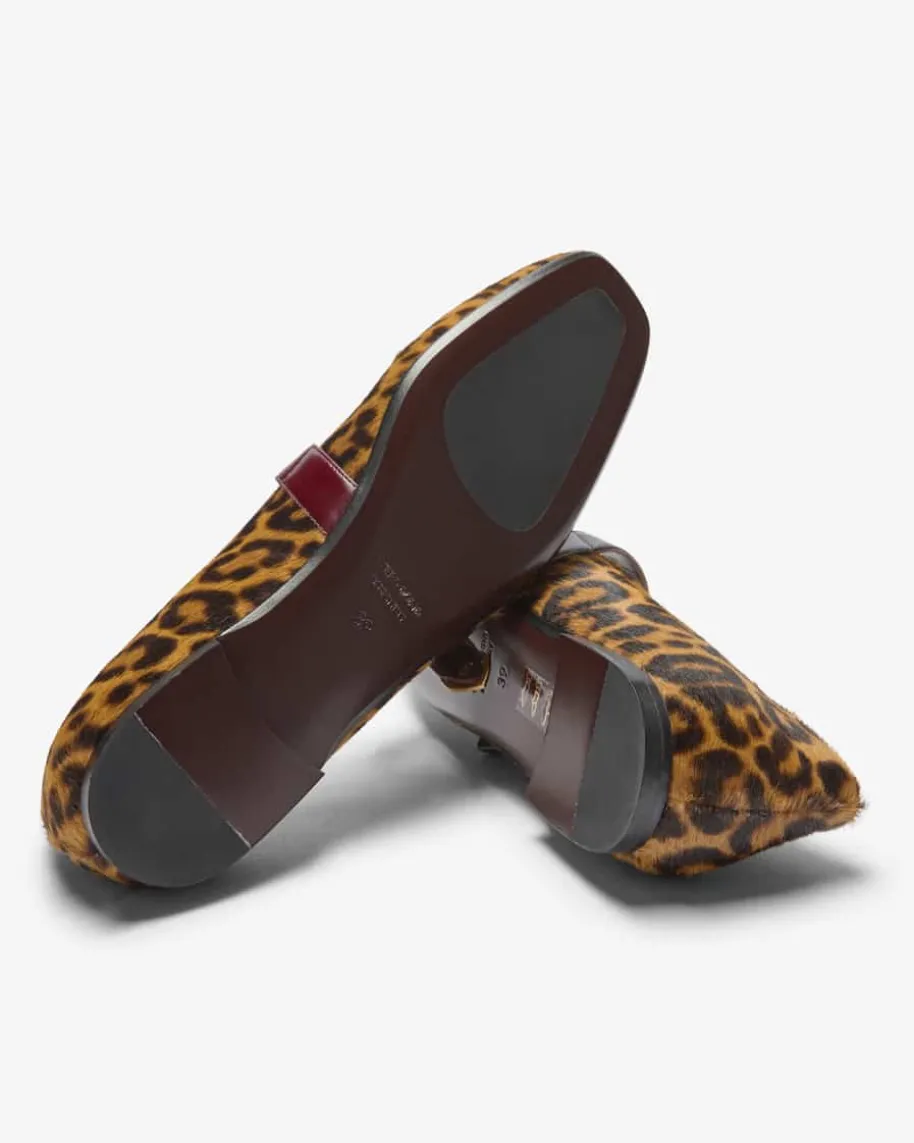 Dalma Fell-Ballerina für Damen von Festa in Dunkelbraun und Hellbraun. DasModell besticht in edler changierender Fell-Aufmachung im Allover-Leo-Dessin,während die eckige Form mit abgerundeten Kanten für einen raffinierten Twistsorgt. Der Riemen mit stilvoller Schnalle rundet den femininen Begleiter gekonntab.
