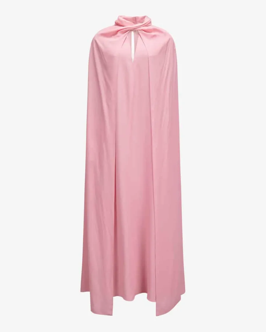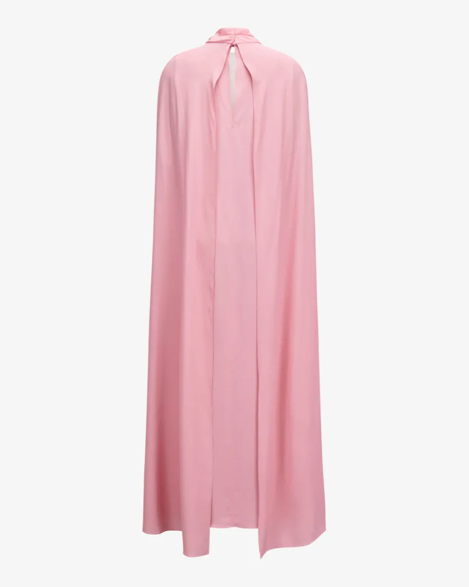 Daphi Kleid für Damen von Natan in Rosa. Das Modell zeichnet sichdurch die fließende Verarbeitung mit Seide aus, welche sowohl haptisch als auchoptisch überzeugt. Das abnehmbare Cape mit Stehkragen und feinen Raffungenrundet den extravaganten Abend-Look gekonnt ab.