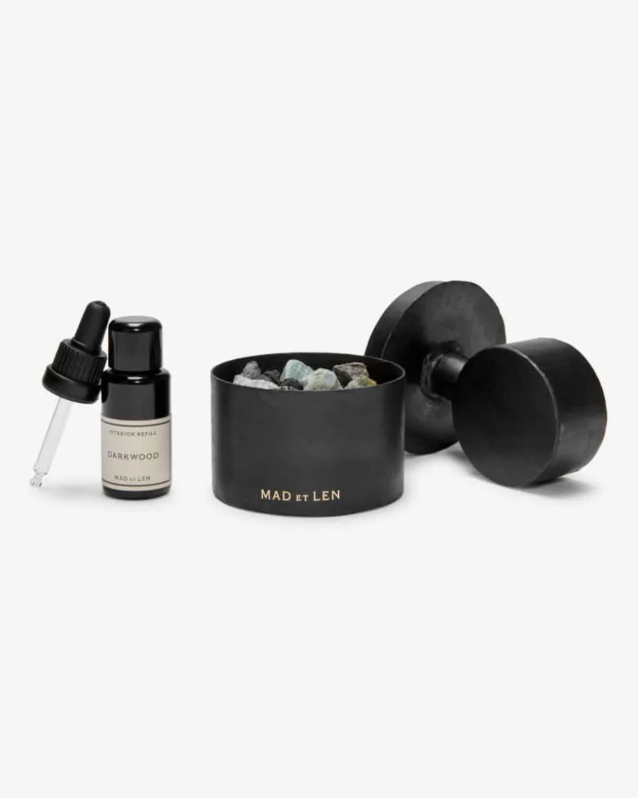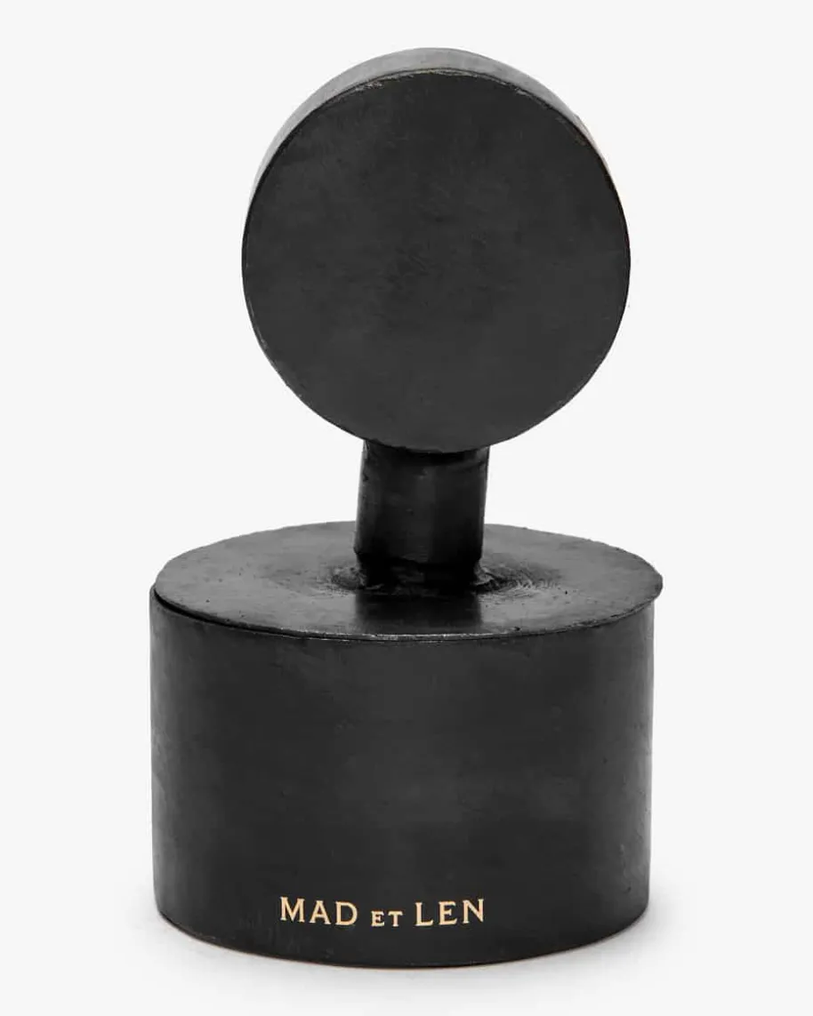Dark Green Mini Pot Pourri Totem von Mad et Len. Handgefertigt in Frankreich –Leidenschaft und Handwerk zeichnen das Label aus. Mit diesem handgeschmiedetenGefäß aus 100% geschwärztem Eisen erleben Sie eine sinnliche Verschmelzung vonEdelsteinen und der Kraft des Metalls, die dank dem Duft „Darkwood“ einintensives Dufterlebnis mit rauchiger Note verspricht: Ledriger Farn trifft hierauf Ebenholz, Teer und alte verbrannte Rinde.