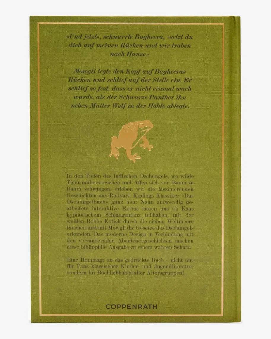 Das Dschungelbuch Buch für Kinder von DT-Collection in Grünund Gold. In diesem edlenBuch mit goldfarbenen Details können sich kleine Mowgli-Fansauf ein Wiedersehenmit ihren Dschungel-Helden freuen. Der Klassiker von RudyardKipling überzeugtdurch liebevoll gestaltete Illustrationen von MinaLima sowieinteraktivenExtras.