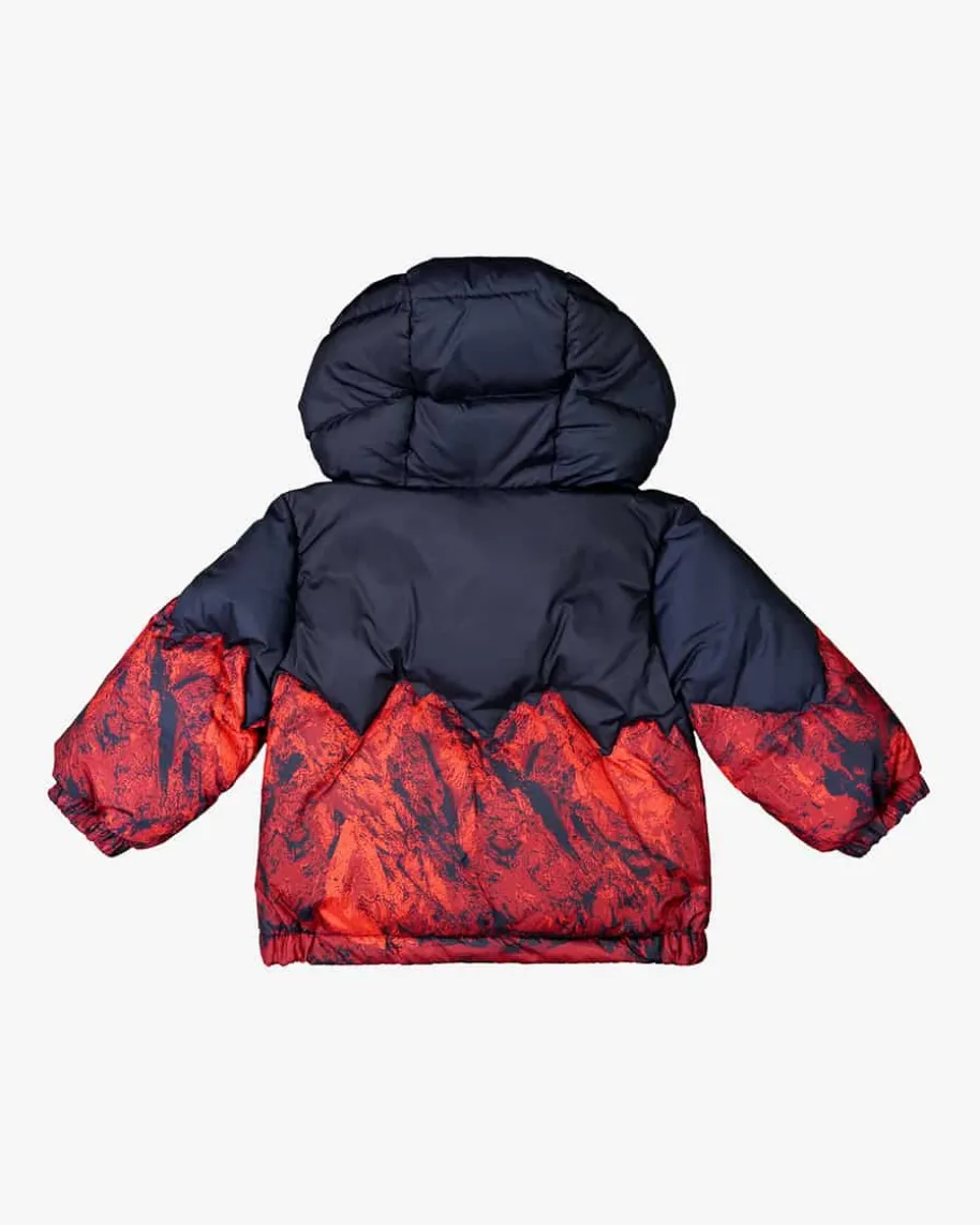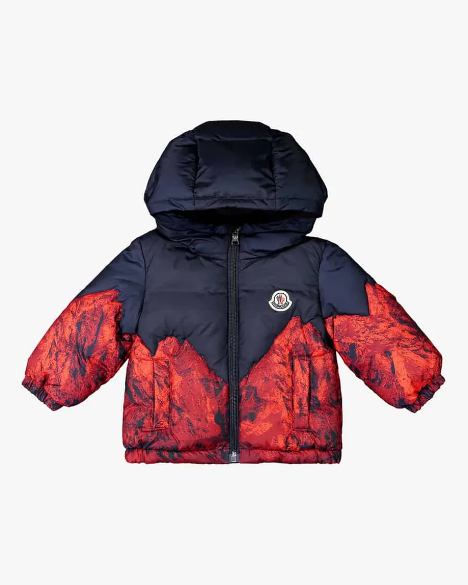 Daste Baby-Daunenjacke von Moncler in Navy und Rot. Das Modellbegeistert mit dem Berg-Motiv, welches den winterlichen Look gekonntunterstreicht. Zugleich sorgt die hochwertige Daunen-Feder-Füllung für optimaleWärmeisolierung.