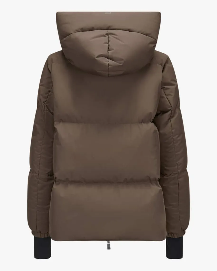 Daunen-Funktionsjacke für Damen von Herno in Khaki. Das italienischeTraditionsunternehmen entwirft seit vielen Jahren luxuriöse Jacken. ZeitloseSchnitte, traumhafte Farben sowie pure Eleganz begeistern genauso, wie einehochwertige und federleichte Daunen-Fütterung. Dieses Modell avanciert dank derwetterfesten und atmungsaktiven Pro-Meteo 2-Lagen-Technik zu einem funktionalenwie auch wärmenden Outdoor-Begleiter.