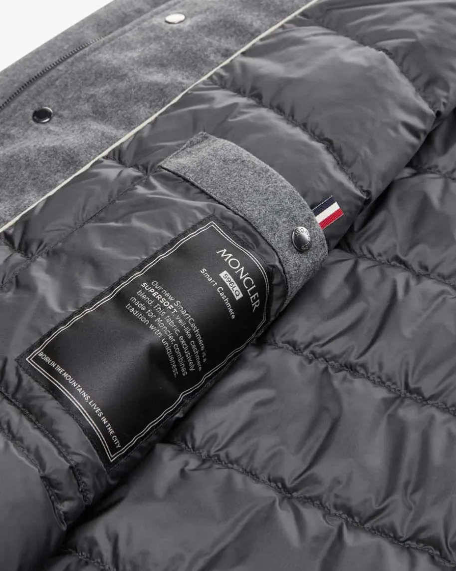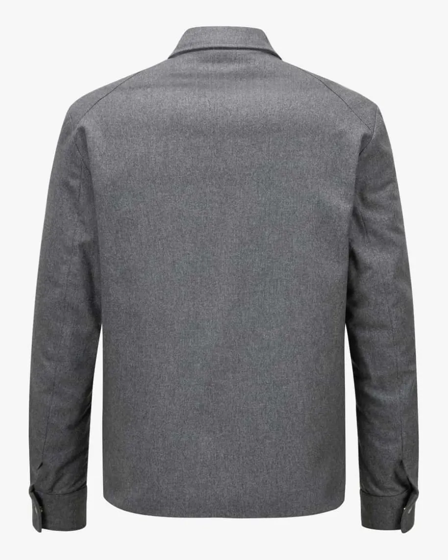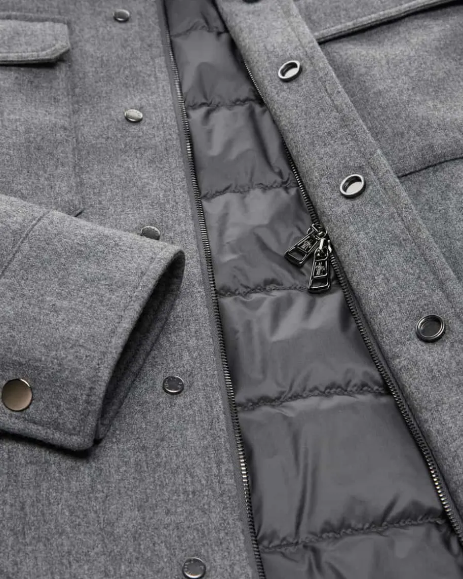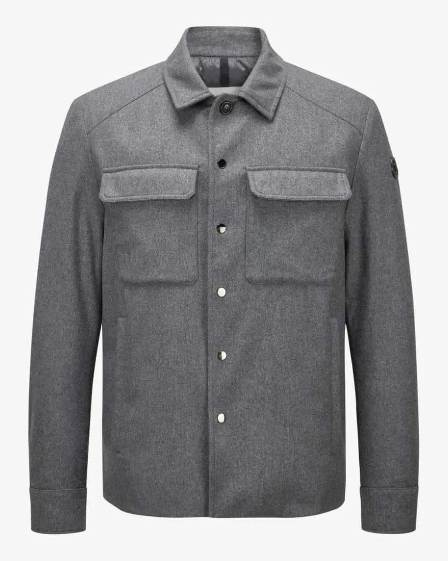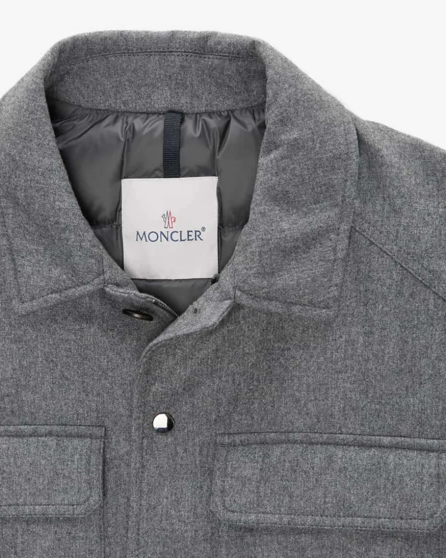 Daunen-Shirtjacket für Herren von Moncler in Grau. Das Modell präsentiert sichin modischer Hemd-Aufmachung, die für einen maskulinen Look sorgt. Zudemgarantiert die hochwertige Daunenfüllung eine optimale Wärmeisolierung.