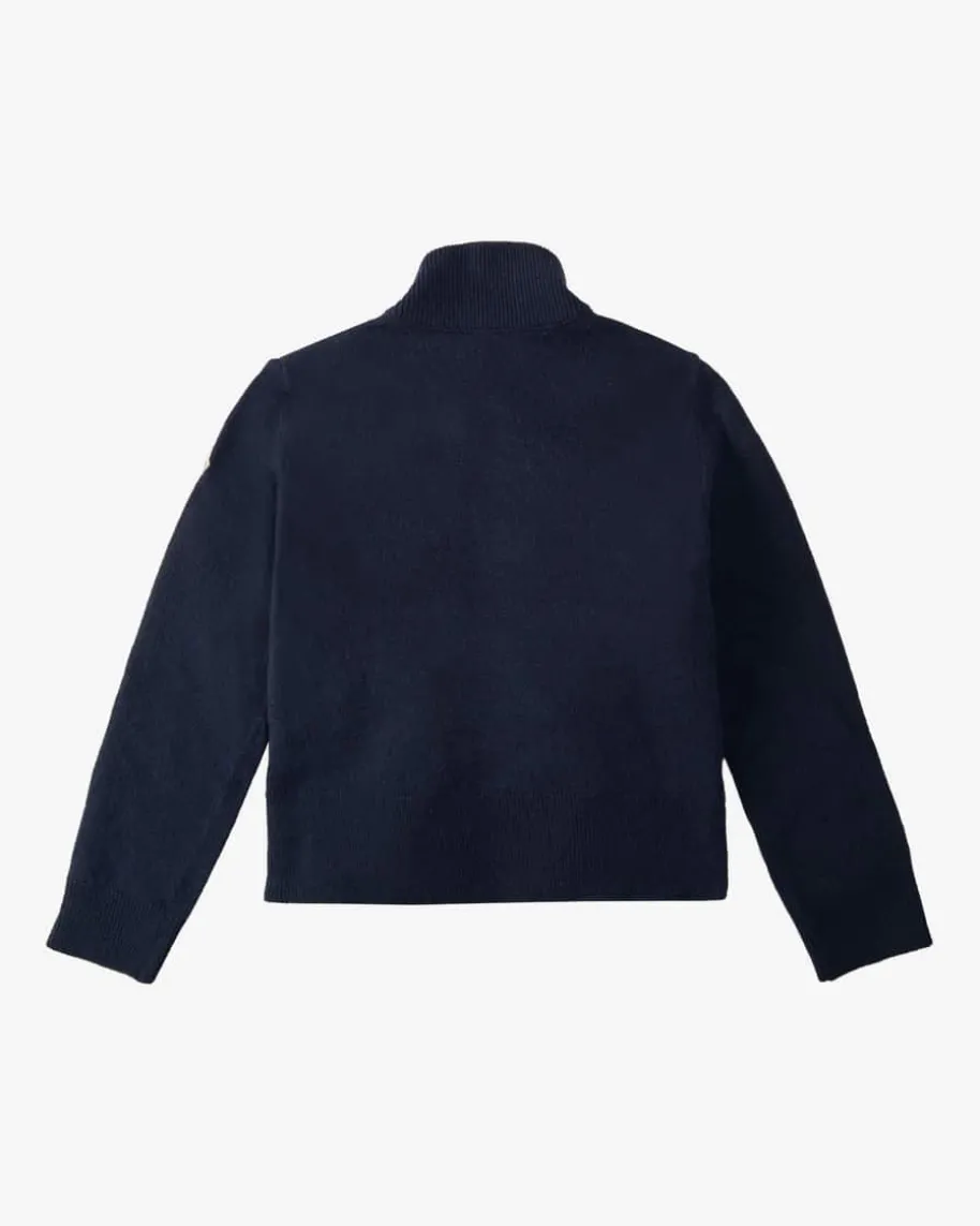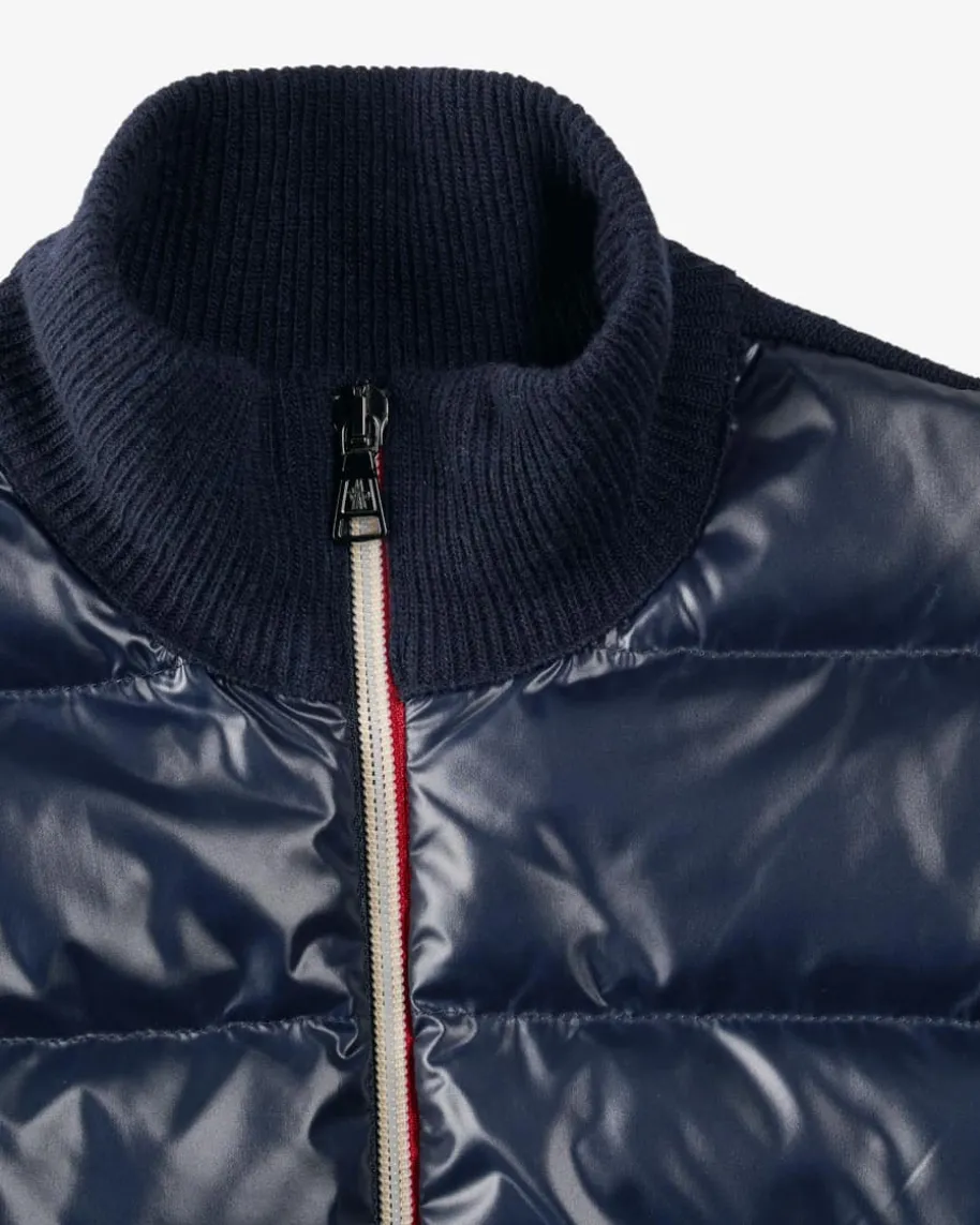Daunen-Strickjacke für Jungen von Moncler Enfant in Navy. Die hochwertigeSchurwoll-Qualität verleiht dem Design einen legeren Charakter und sorgt fürangenehmen Tragekomfort. Gleichzeitig bietet die gesteppte Vorderseite mitwärmender Daunen-Feder-Füllung zuverlässigen Schutz an kühleren Tagen – idealfür sportive Layering-Optionen in der Übergangszeit.