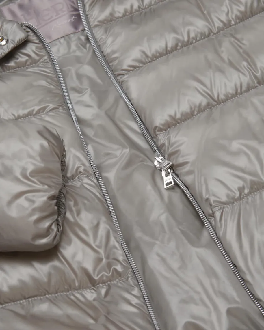 Daunenjacke für Damen von Herno in Grau. Das italienische Premium Label ist seitJahren bekannt für seine besonders leichten Daunenjacken, die mit zeitlossportiven Designs überzeugen. Auch dieses Modell begeistert mit changierenderStepp-Optik sowie hochwertiger Daunen-Feder-Füllung, während der legere, leichtverkürzte Schnitt in cleaner Aufmachung einen modischen Look für kühle Tagekreiert.