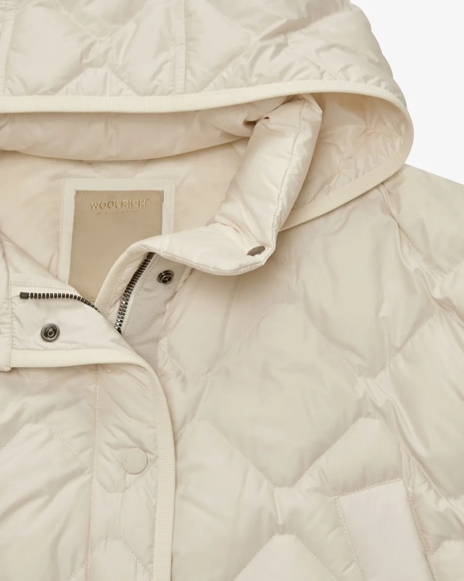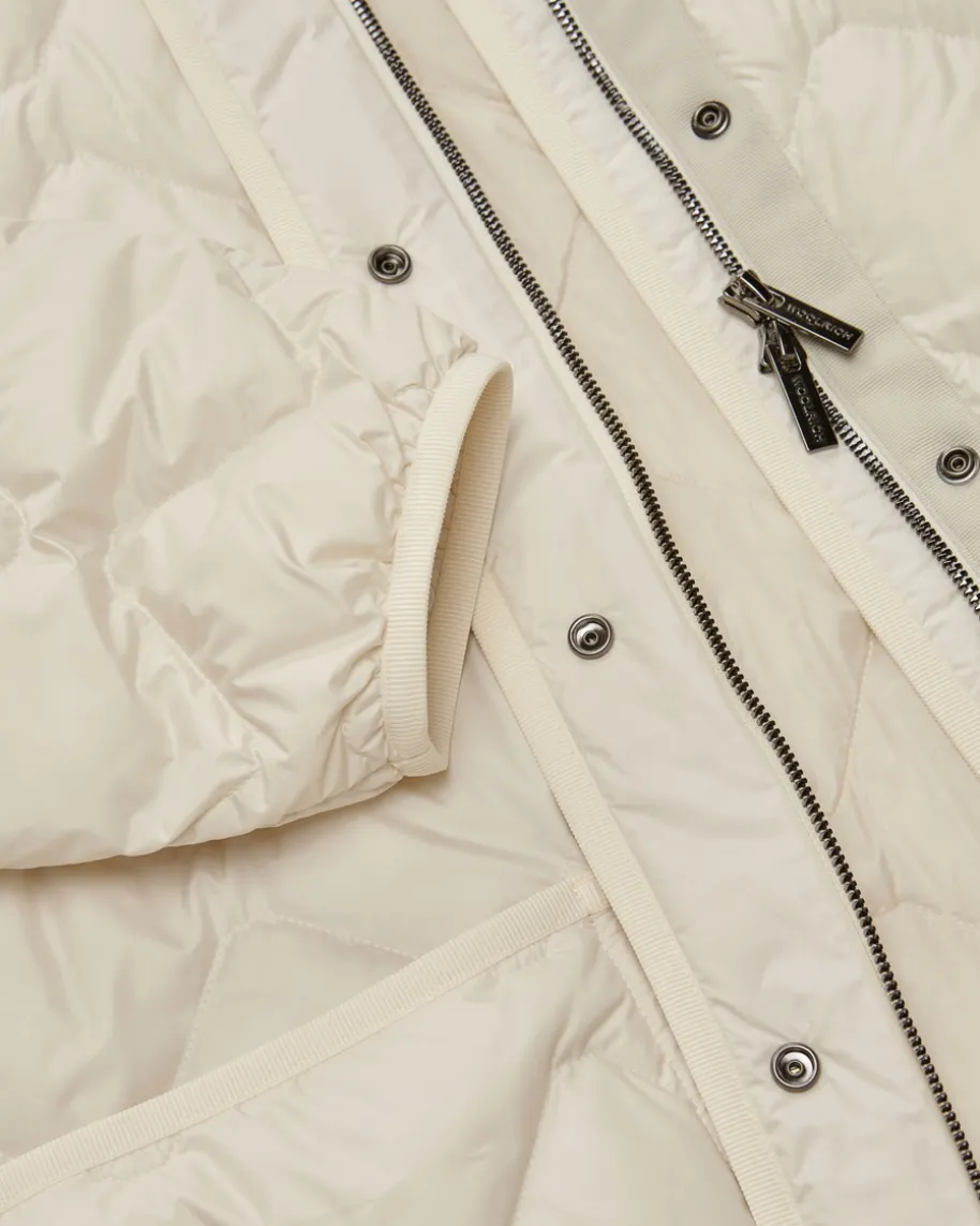 Daunenjacke für Damen von Woolrich in Creme. In modischer Oversize-Passformbesticht das Modell dank der gesteppten Aufmachung als stilvoller Favorit,während die hochwertige Daunen-Feder-Füllung die optimale Wärmeisolierungverspricht.
